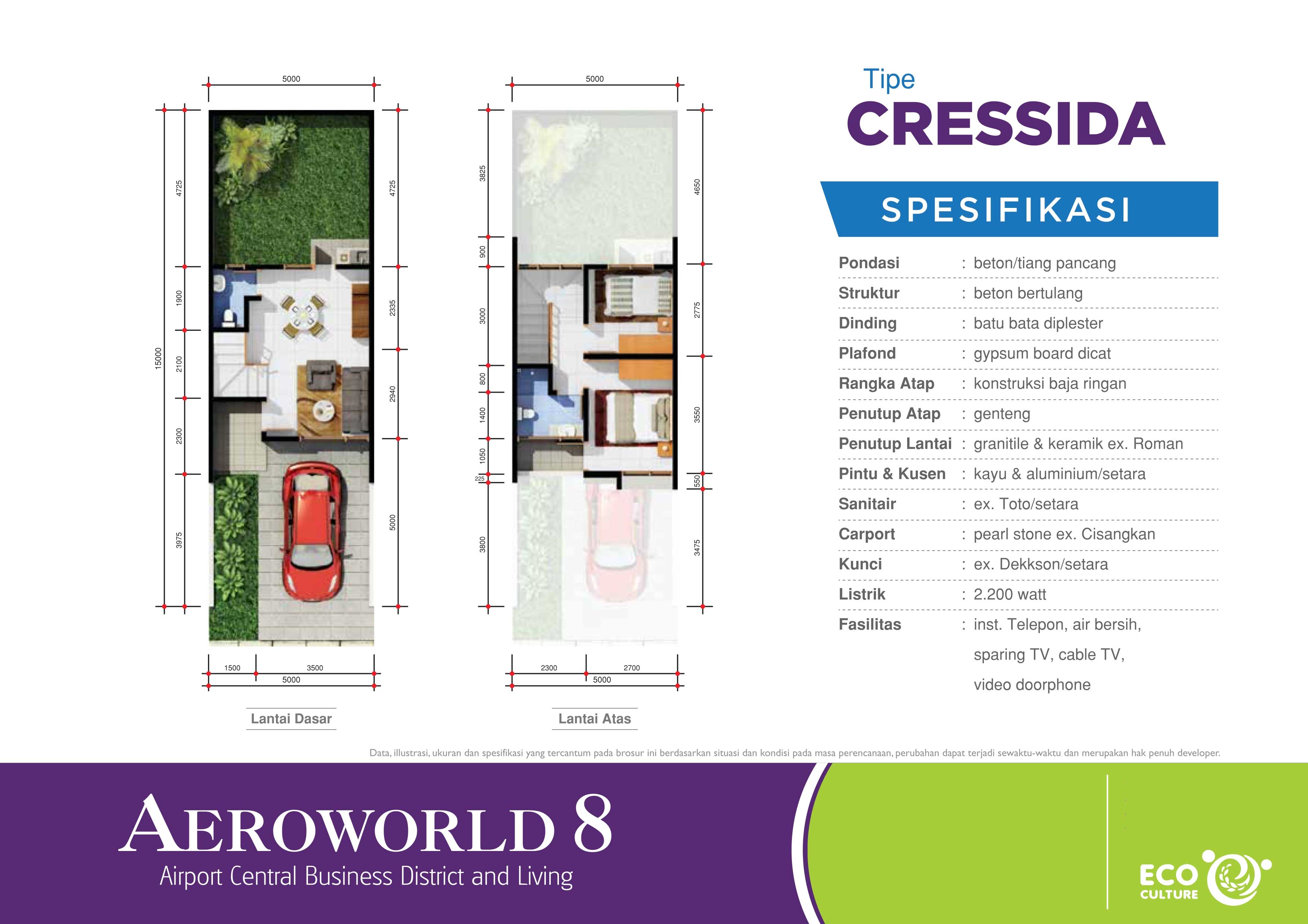 Type Cresida, LT. 75 m2 (5×15 m), LB. 58 m2, KT.2, KM.2, 1 Carport