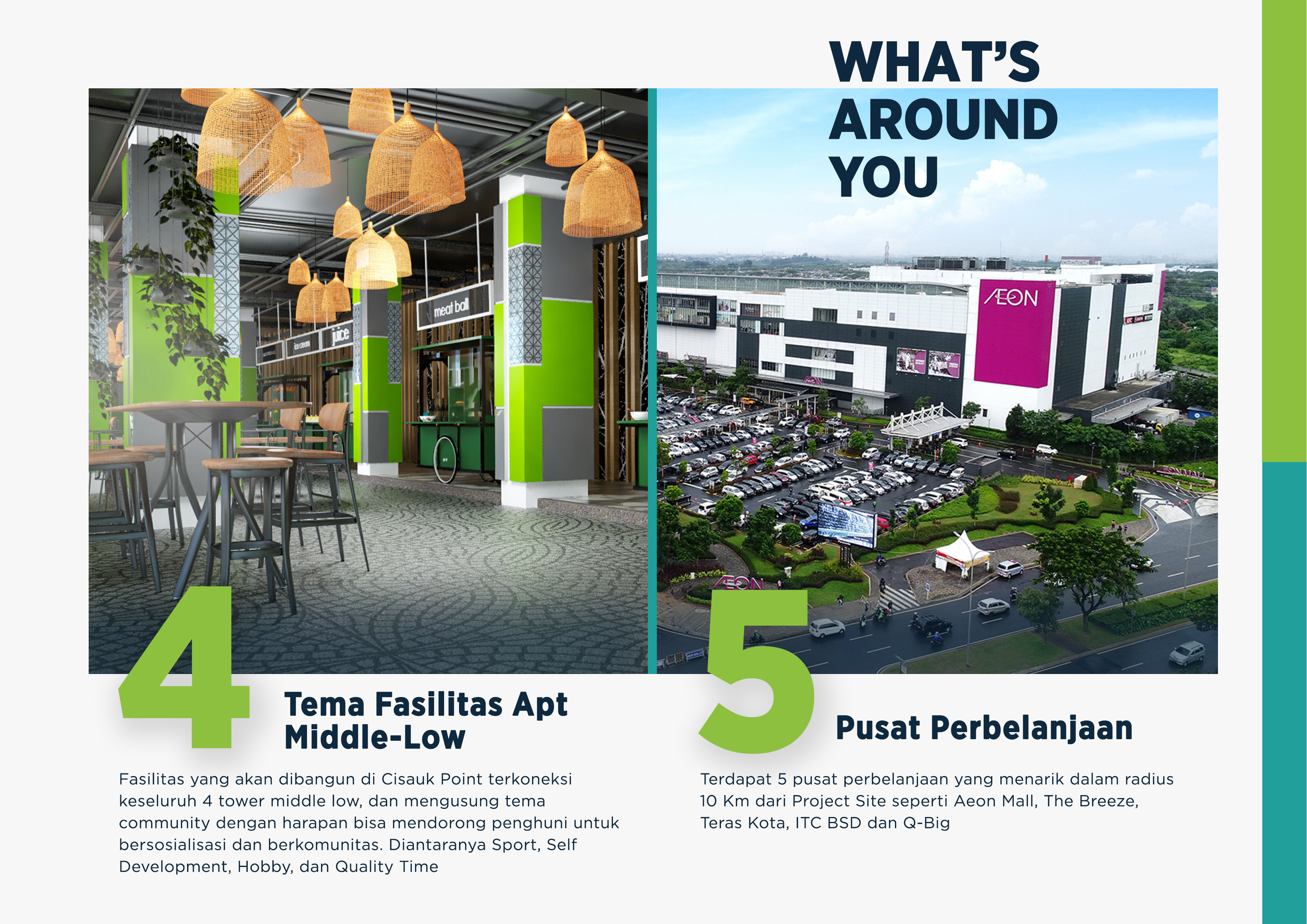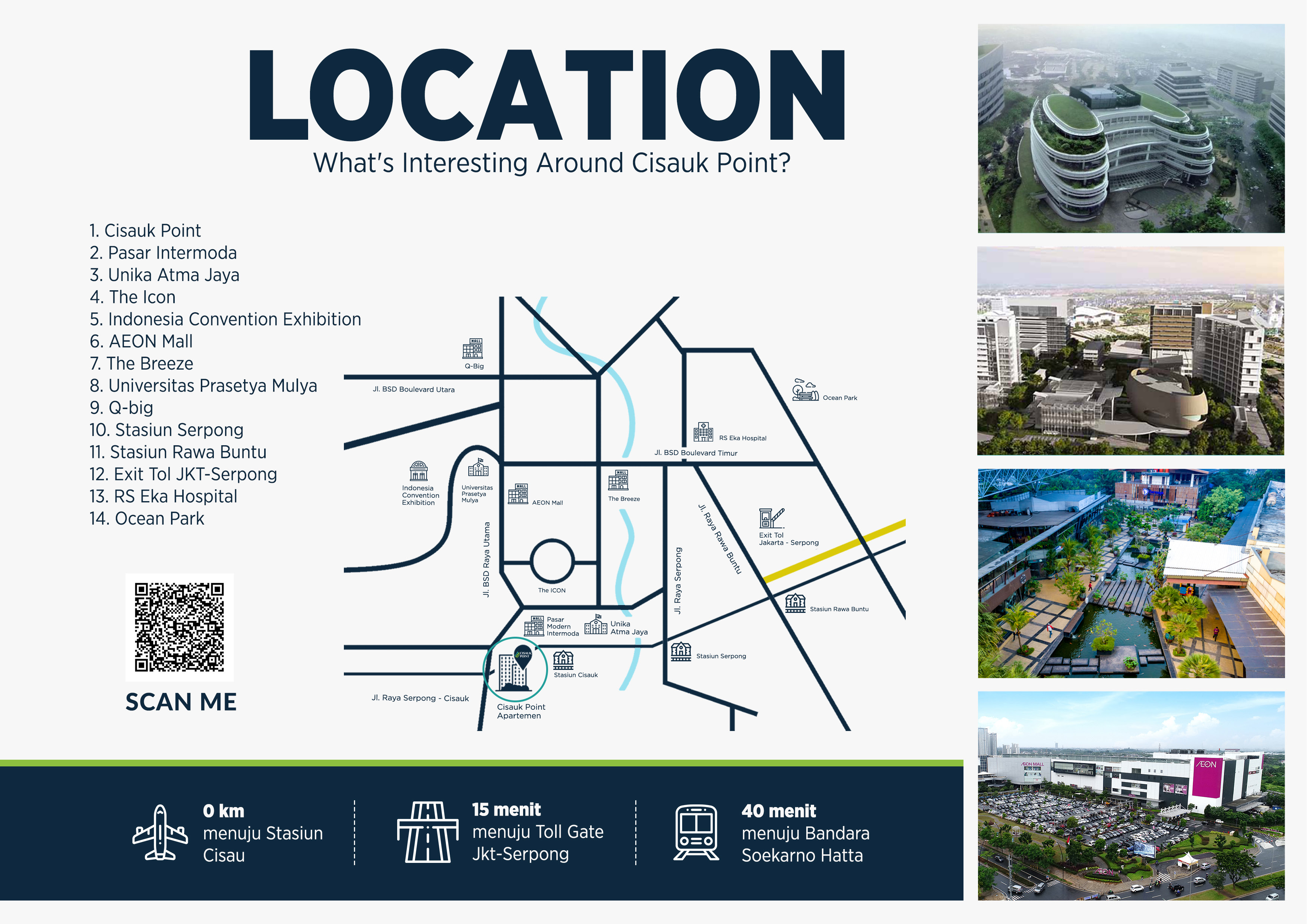 PrimaryProperty.co.id – Cisauk Point, sebuah apartemen terintegrasi dengan Stasiun KRL dan merupakan bagian dari LRT City. Akses langsung ke stasiun KRL Cisauk akan memberikan anda banyak kemudahan dan memudahkan anda untuk berpergian. Cisauk Point juga dekat dengan berbagai Pusat Perbelanjaan dalam radius 10 km yaitu AEON Mall, QBig BSD, The Breeze dan ITC BSD.