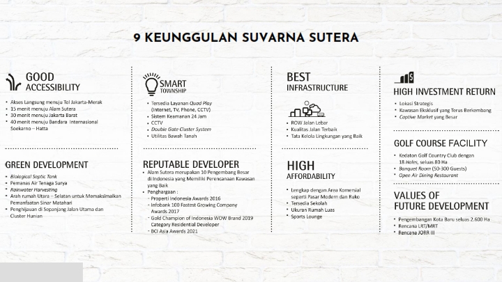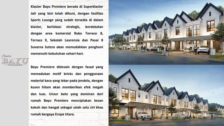 Suvarna Sutera oleh Alam Sutera Group, kota baru seluas 2.600 hektar di Tangerang yang mudah dijangkau dengan akses tol langsung, hanya membutuhkan ±30 menit dari Jakarta, menghadirkan klaster terbaru di area klaster yang sudah dihuni, yaitu BAYU PREMIERE.