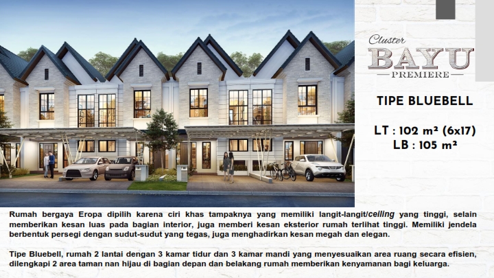 2. Type Bluebell (LT 102m² (6×17), LB 105 m²), 3+1 kamar tidur, 3+1 kamar mandi dan 2 Carport