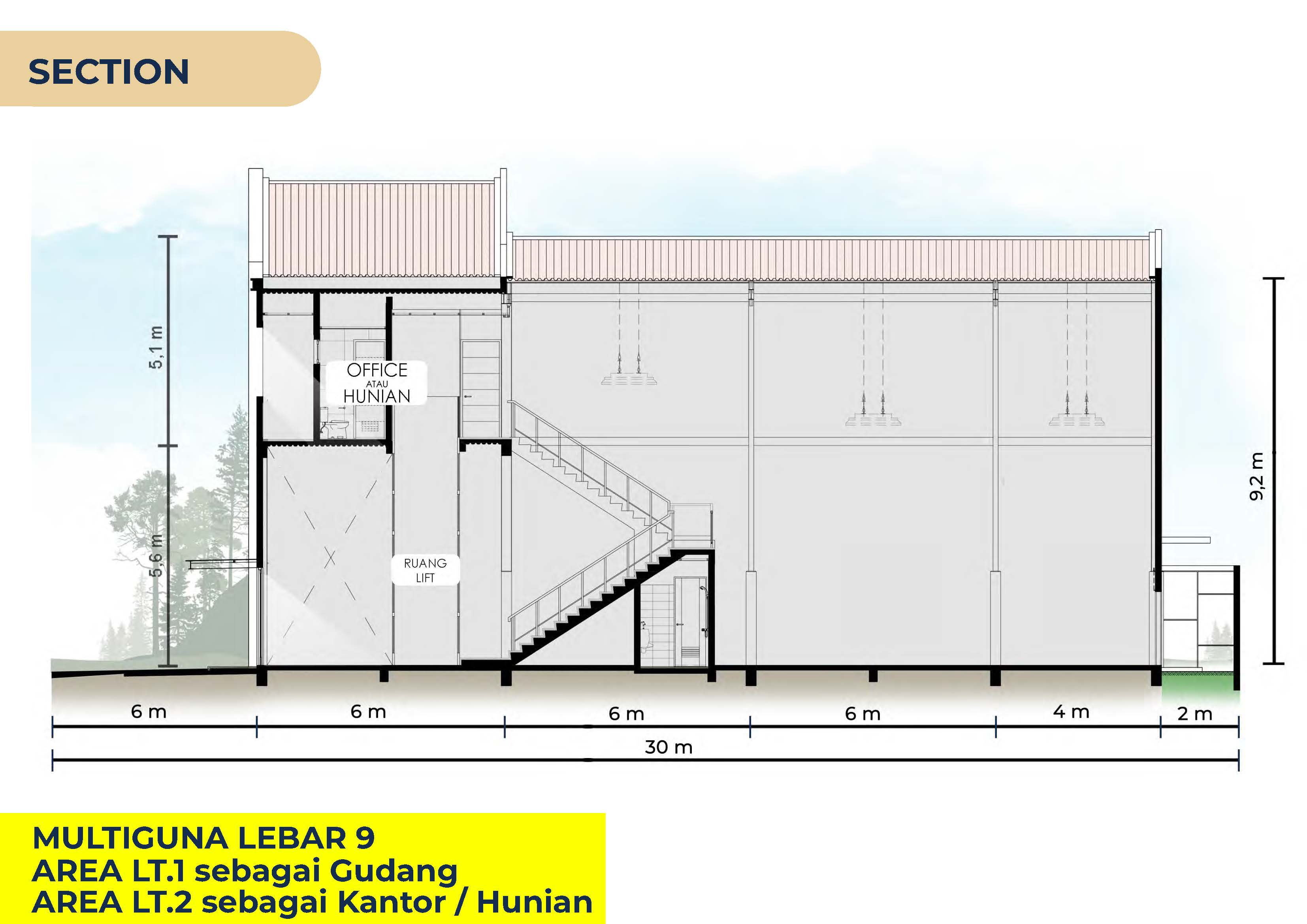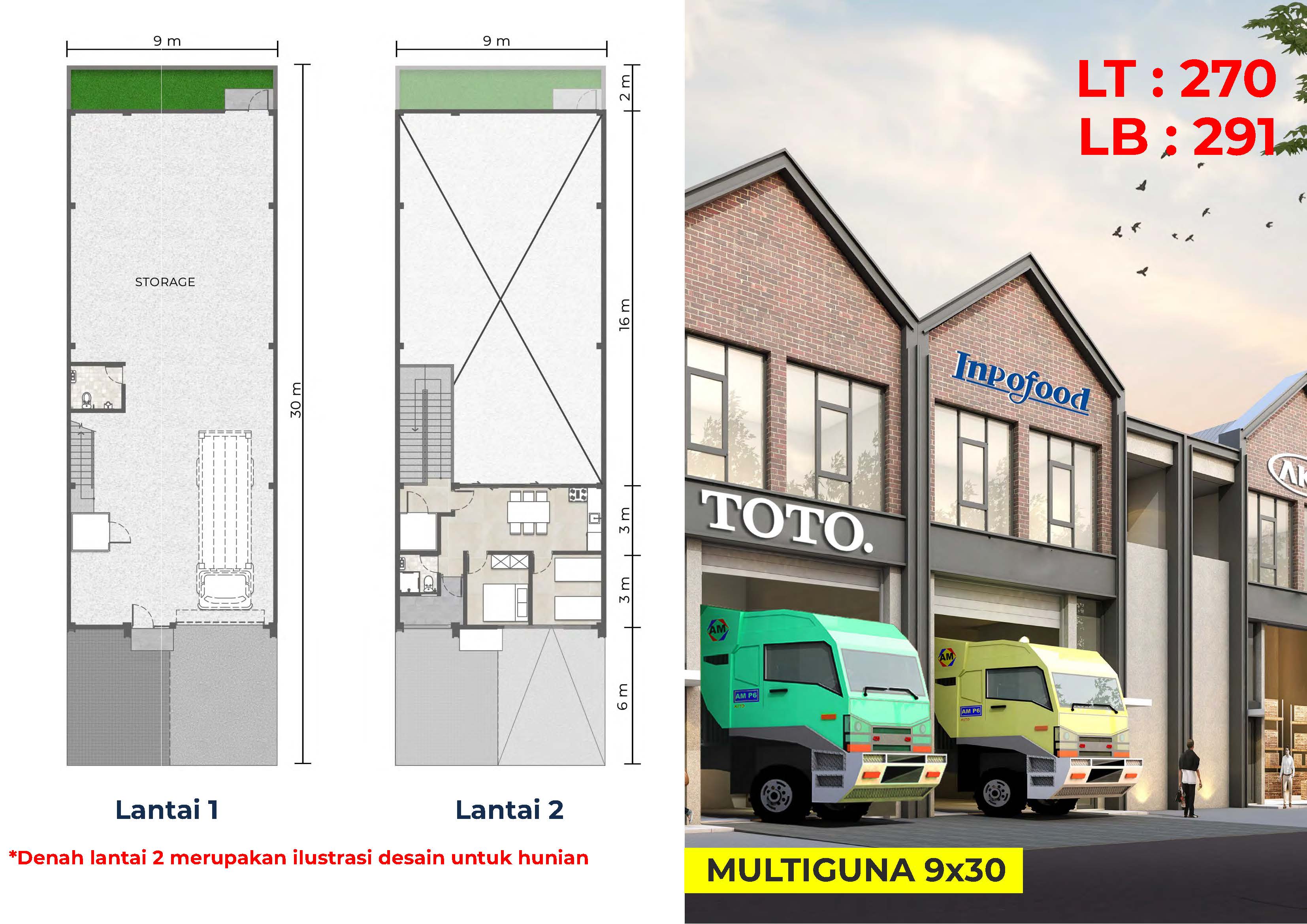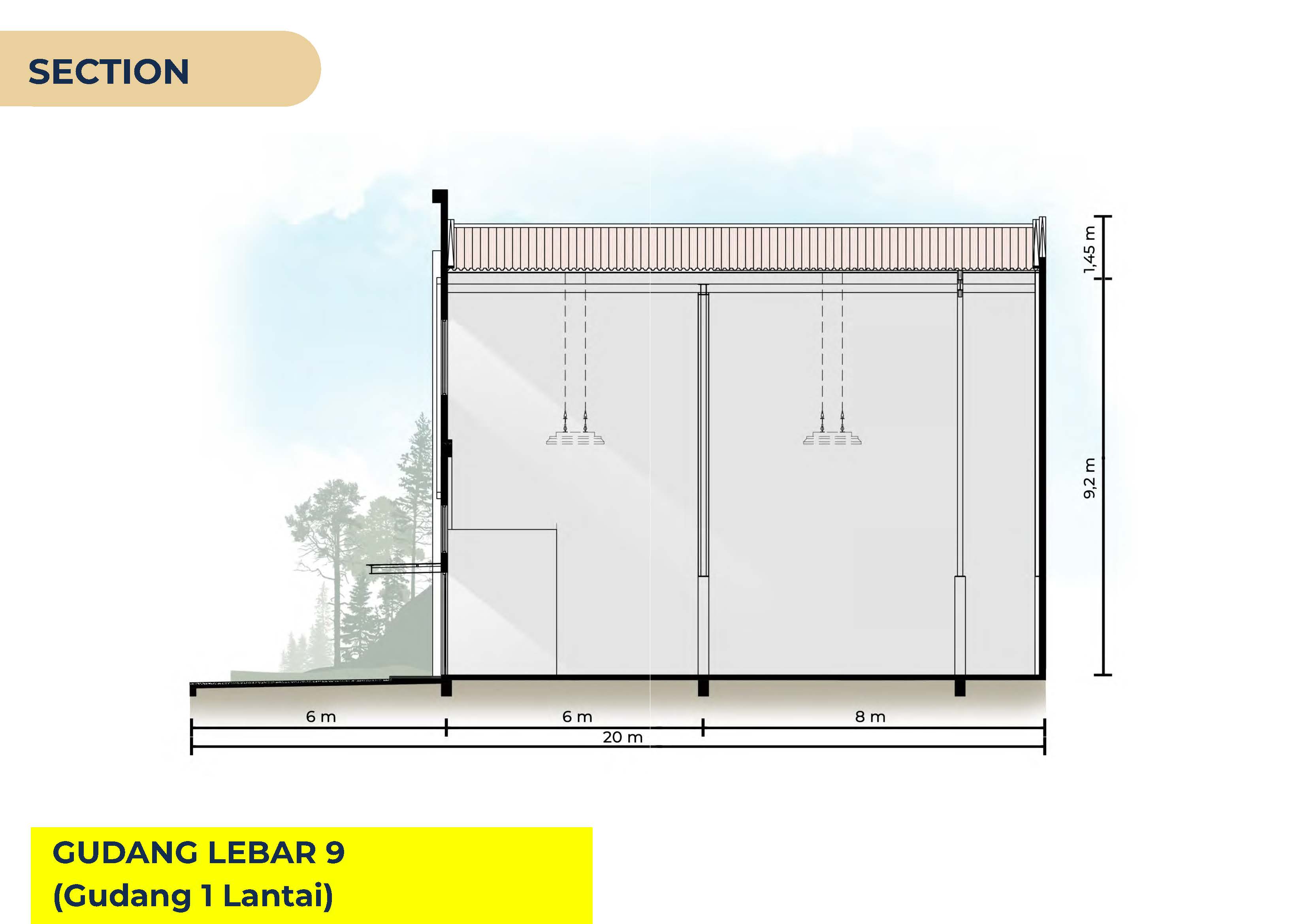 Gudang Multiguna ini sangat cocok untuk logistik & penyimpanan bahan baku baik industri kecil maupun rumah tangga, distributor online, data center dan inventory, central kitchen, bahan textile dan garment, workshop atau bengkel servis.