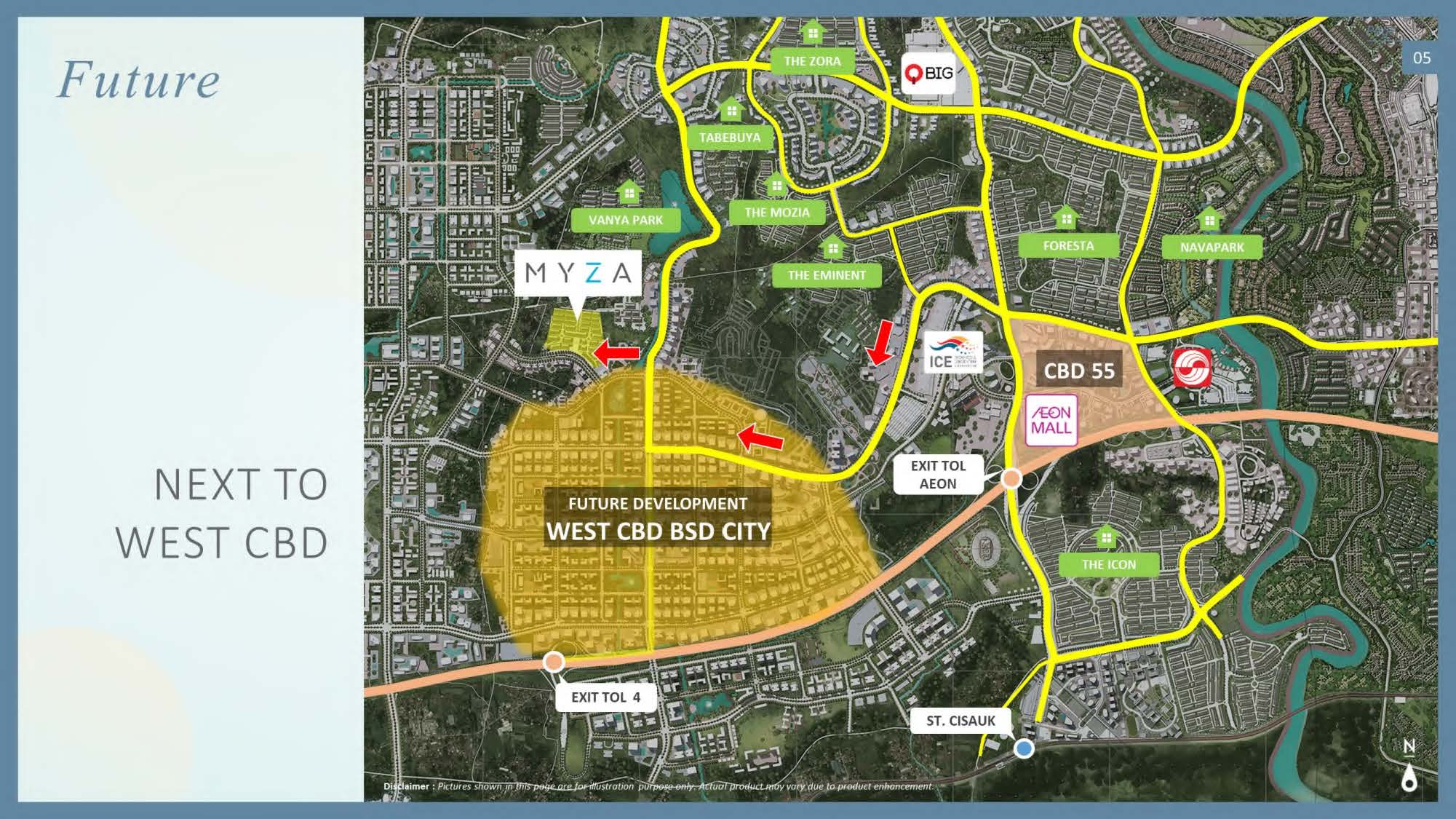 Berada di cluster Myza BSD, dekat dengan ICE BSD dan AEON Mall BSD. Dekat dengan lokasi beberapa exit toll.