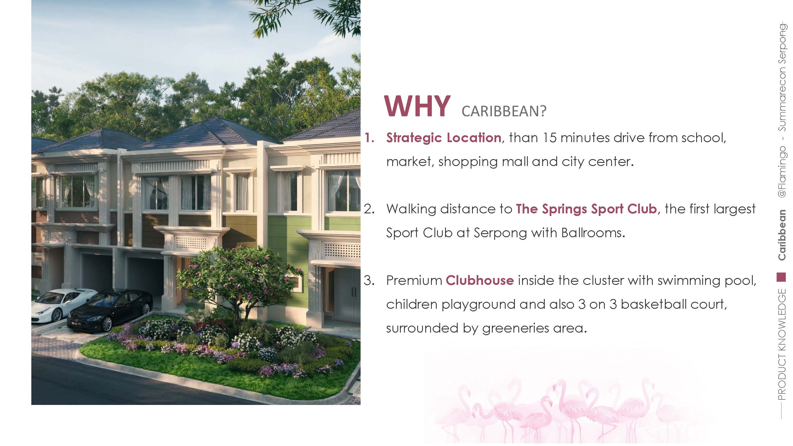 Cluster Caribbean terletak di Flamingo yang dikembangkan oleh developer ternama, Summarecon Serpong. Menghadirkan hunian modern dan ekslusif.
