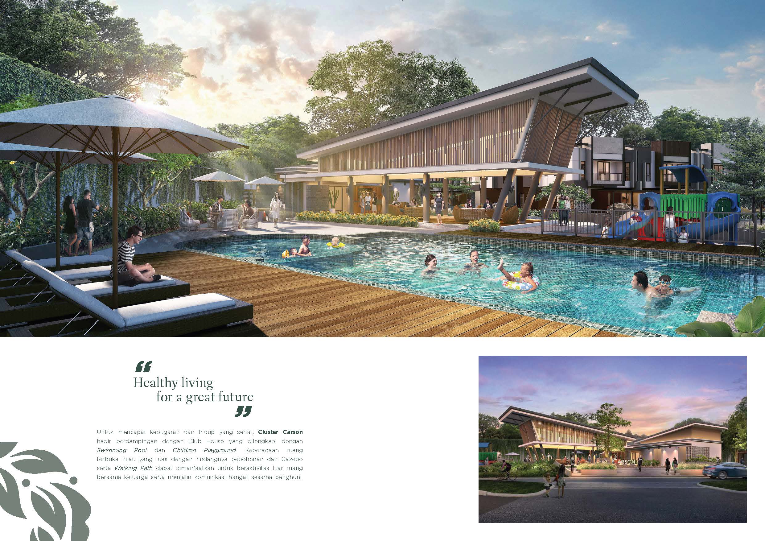 Cluster Carson mempersembahkan hunian dinamis dengan “Work Life Balance” antara keluarga, pribadi dalam sebuah harmoni kehidupan yang sehat. Dengan balutan arsitektur modern dan konsep baru, Cluster Carson dirancang dengan design yang memaksimalkan pemanfaatan cahaya alami lebih banyak ke dalam rumah dan cross ventilation yang menjadi jalur aliran udara segar ke setiap ruang sehingga menciptakan semangat “Healthy Living”. Semakin lengkap dengan fitur Smart Home System yang akan membuat hidup lebih praktis dan berkualitas. Keberadaan working space area menjadikan Carson semakin istimewa, dapat digunakan sebagai Home Office ataupun ruang belajar bagi anak.