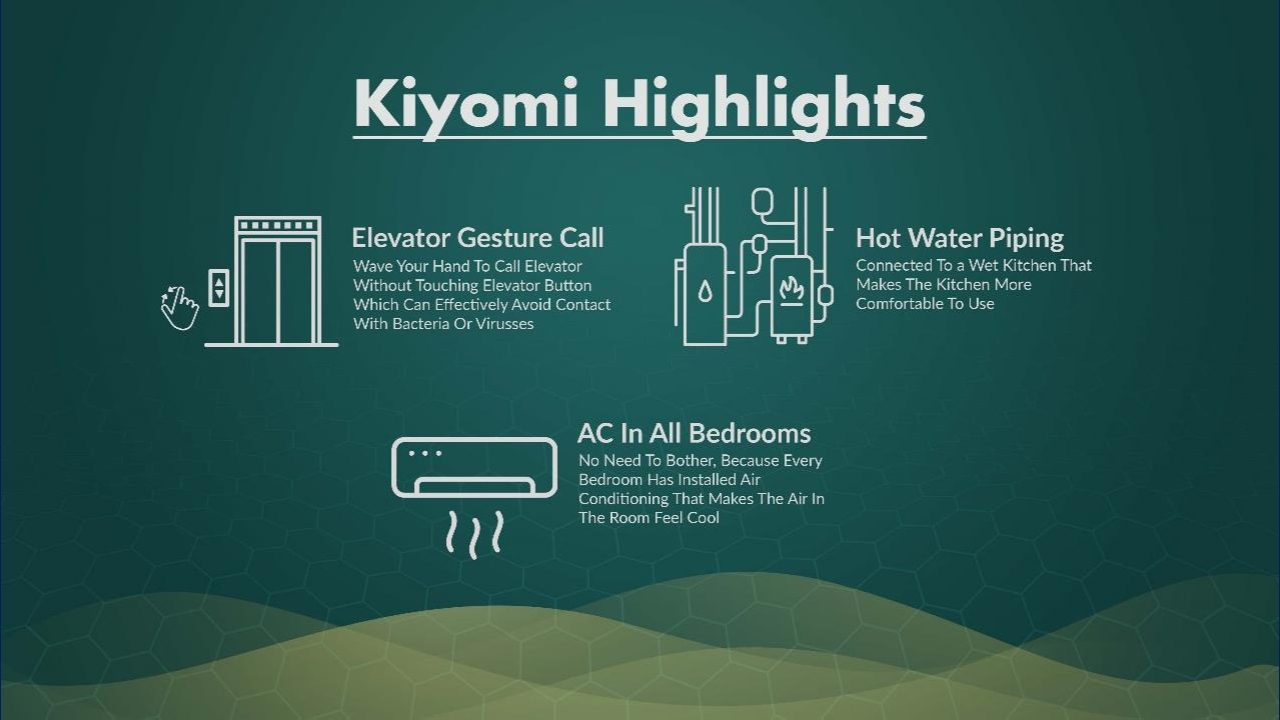- Environmental Friendly Features. Rumah Kiyomi memiliki Low Emissivity (Low-E) Glass at Living – Dining Area & Master bedrooms.