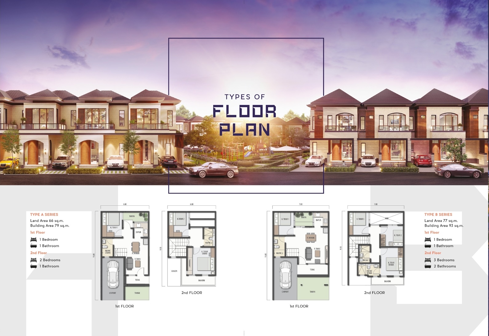 Type A Series, LT / LB : 66 / 79 m2. Rumah 2 lantai, 3 bedroom + 2 bathroom.