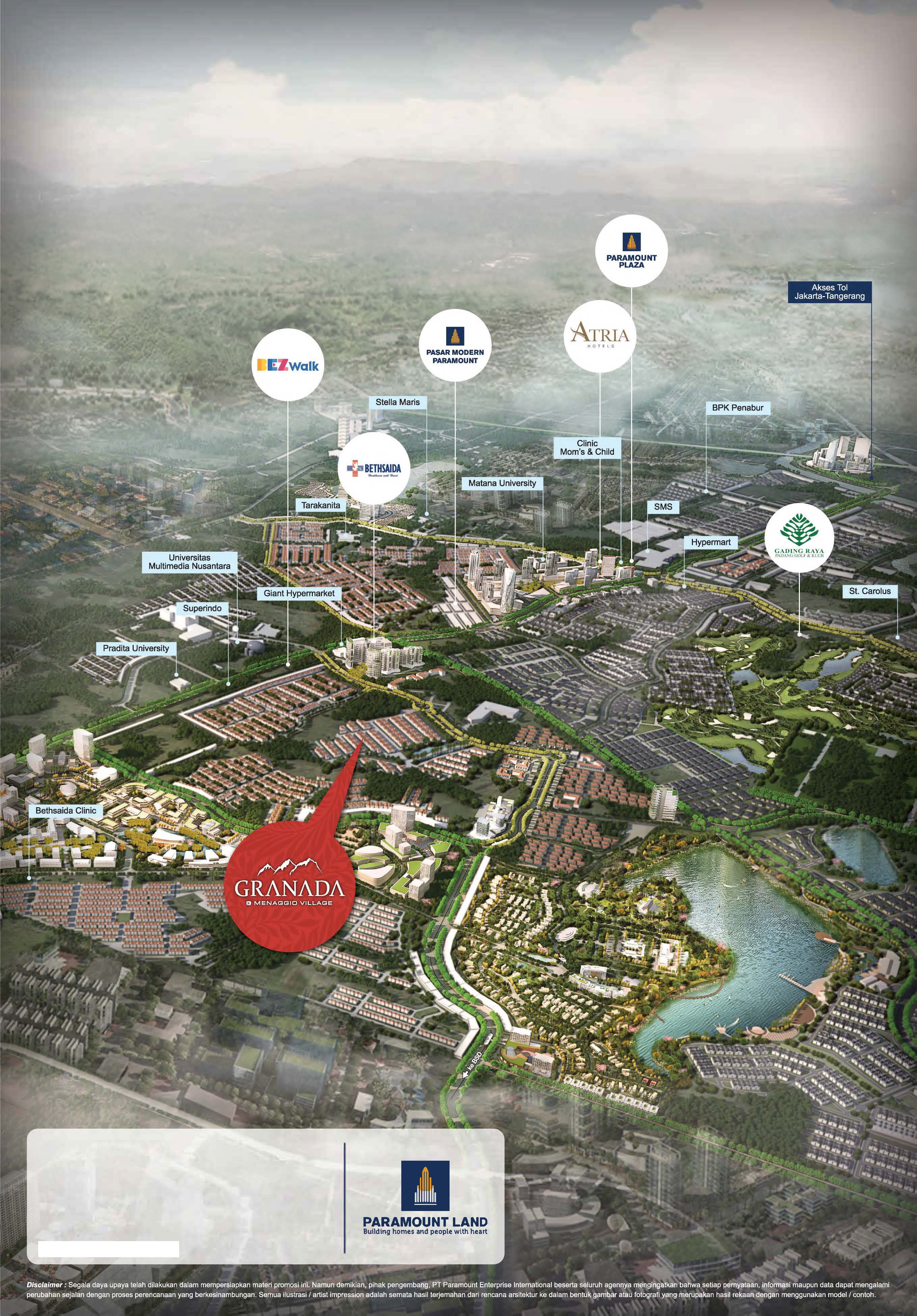 Granada @Menaggio Village adalah cluster hunian di Gading Serpong yang dikembangkan oleh Paramount Land. Cluster yang sangat strategis karena berada diperbatasan Gading Serpong – BSD ini dilengkapi dengan beragam fasilitas kota.