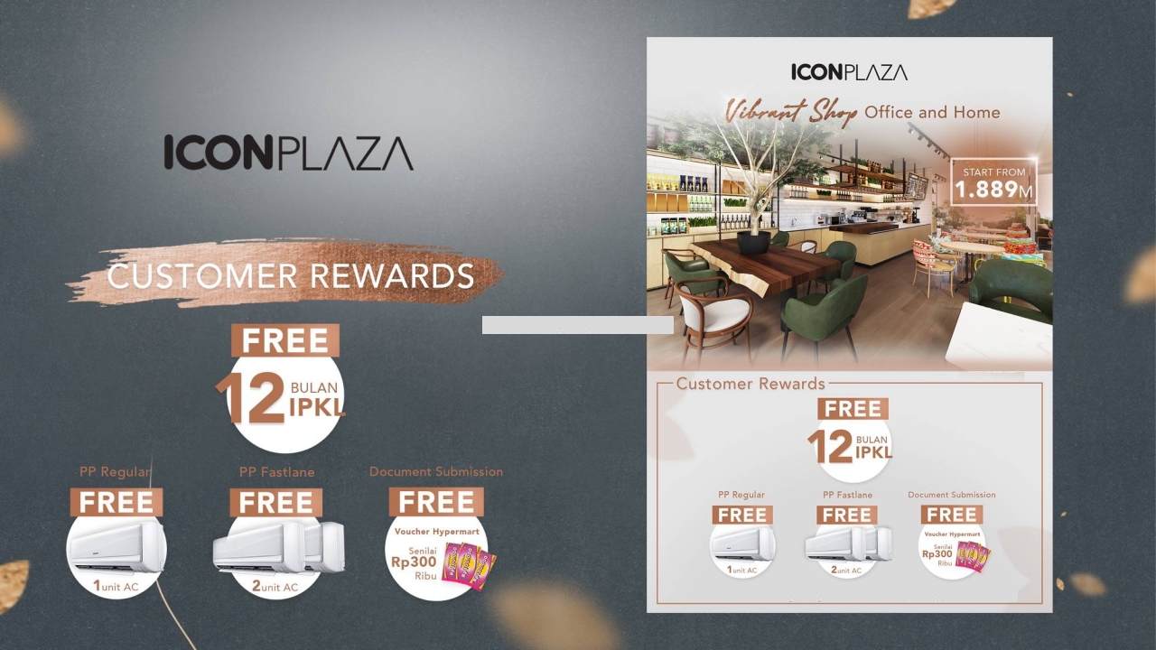 Selain hunian modern, Lippo Group menawarkan Ruko ICON PLAZA yang berada di kawasan Cendana Icon, ruko dengan konsep mixed-use ini tentunya dapat memberikan keuntungan bagi pemiliknya karena pangsa pasar yang telah tersedia dari penghuni cluster tersebut dan penghuni perumahan sekitarnya.