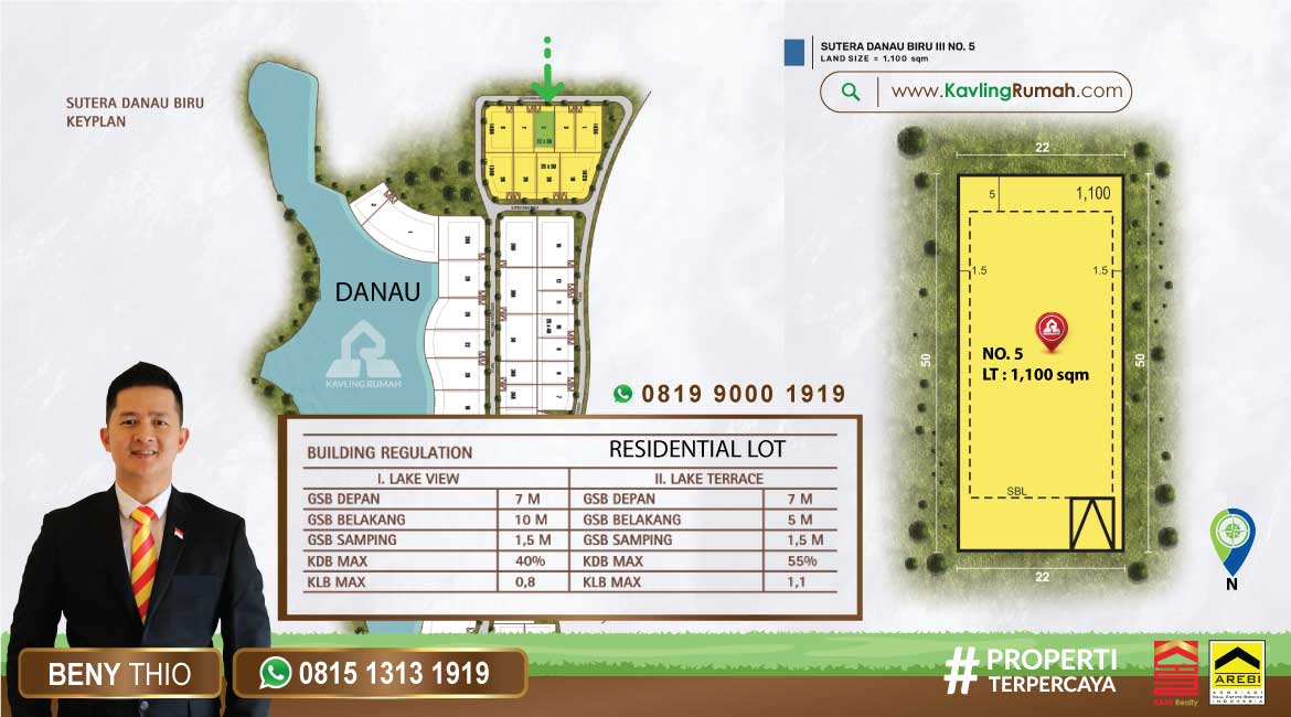 KAVLING SUTERA DANAU BIRU NO. 5 LT. 1100 sqm RESIDENTIAL LOT ALAM SUTERA - Sutera Danau Biru, Pakulonan, Kota Tangerang Selatan, Banten, Indonesia