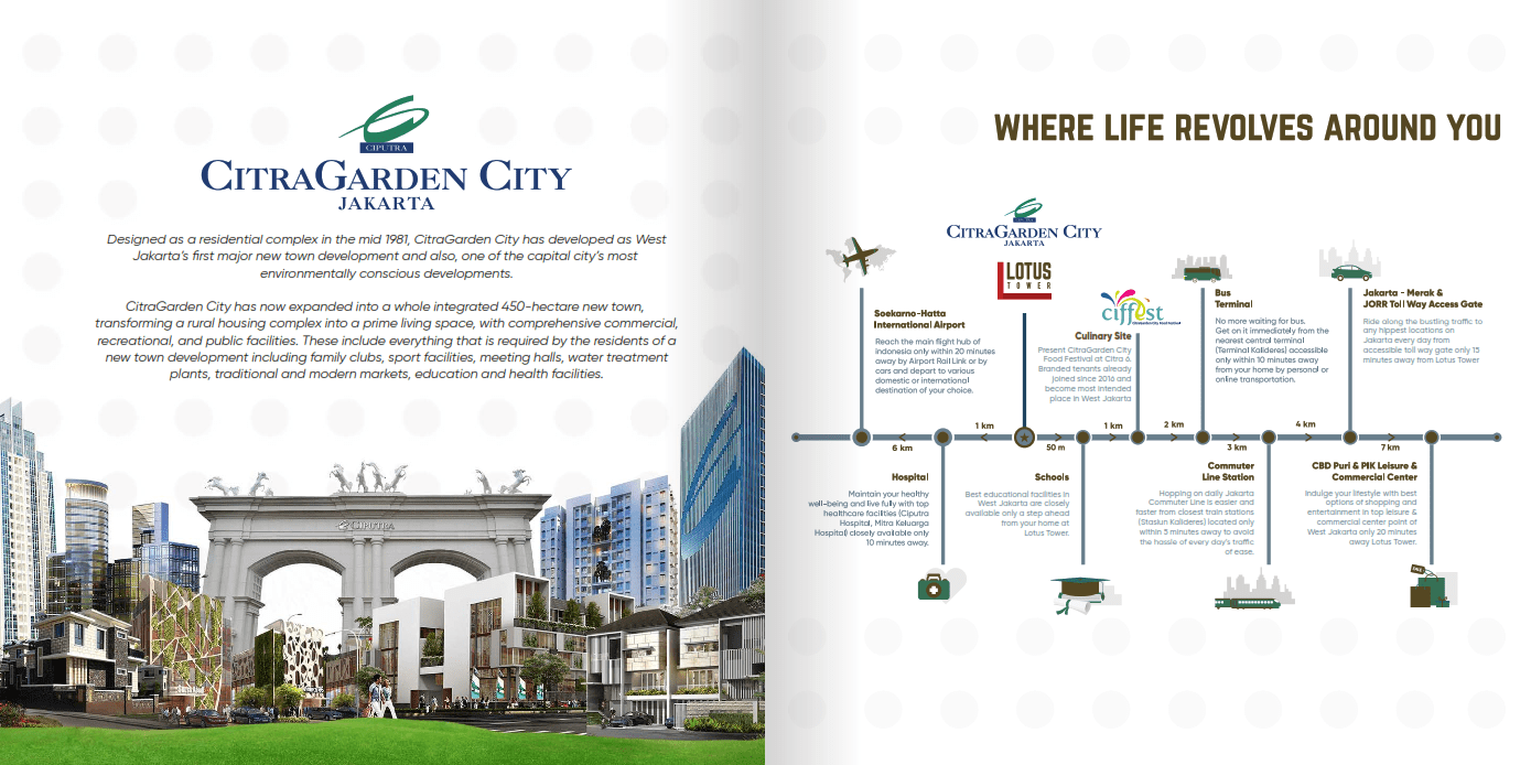 Tower Lotus merupakan pengembangan terbaru CitraGarden City Jakarta, dengan lokasi yang strategis dan dekat dengan bandara Soekarno-Hatta International Airport. Apartment di Jakarta Barat ini menghadirkan aksesibilitas dan kenyamanan di kawasan mixed-use development dengan kualitas internasional terbaik.