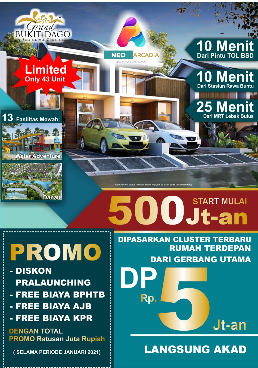 Cluster terbaru NEO ARCADIA @Grand Bukit Dago yang berada di Lokasi terdepan dari gerbang utama, persembahan dari Duta Putra Land.