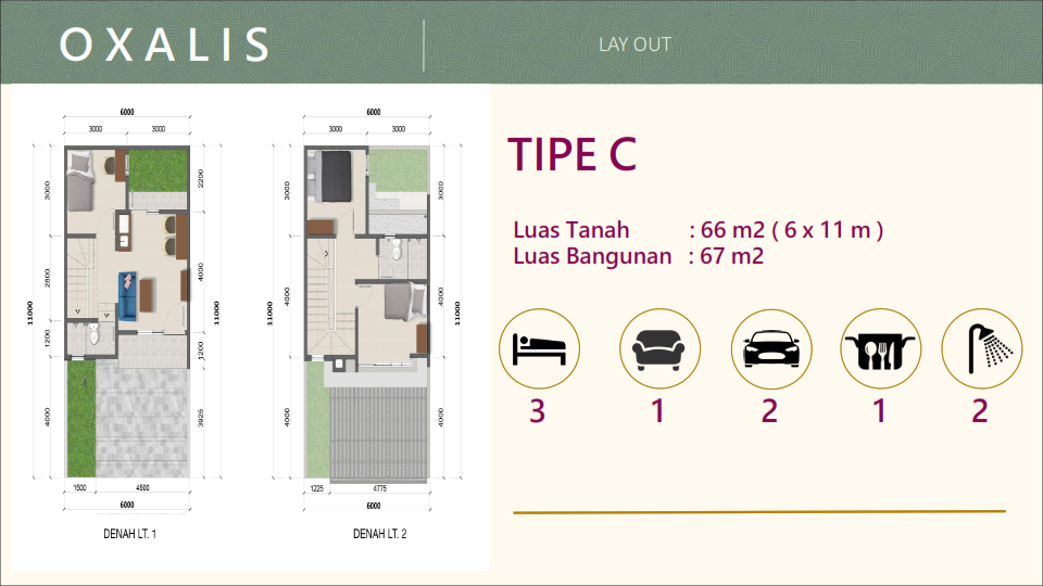 Lebar 6x11m, Luas Tanah 66 m2, Luas Bangunan 67 m2 – Bangunan 2 Lantai