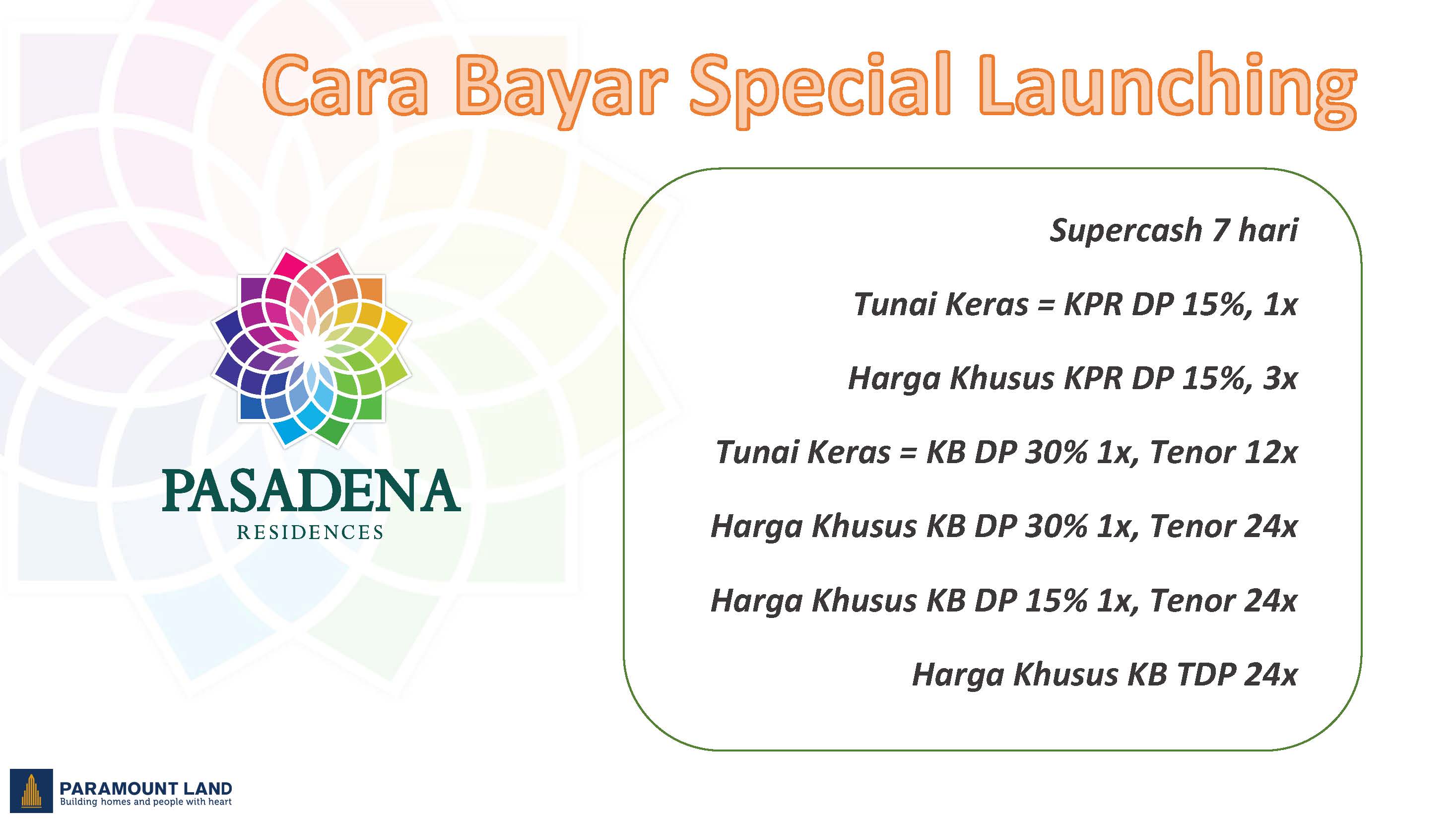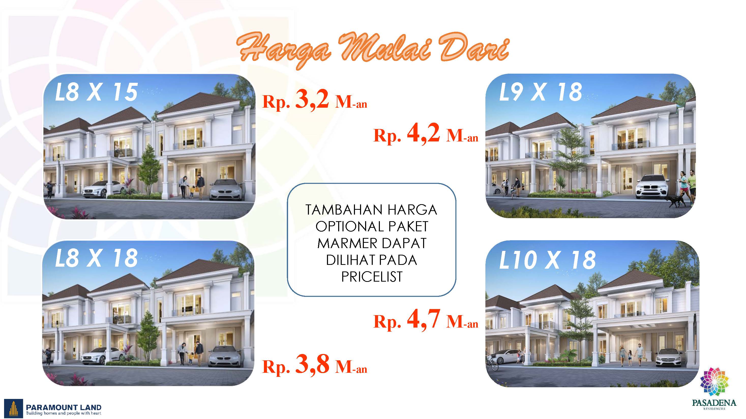 Pasadena Residence terletak di Gading Serpong. Dikembangkan oleh developer ternama, Paramount Land. Pasadena Residence merupakan cluster terbaru dan termewah di Gading Serpong. Dengan harga mulai dari Rp3,2Man.