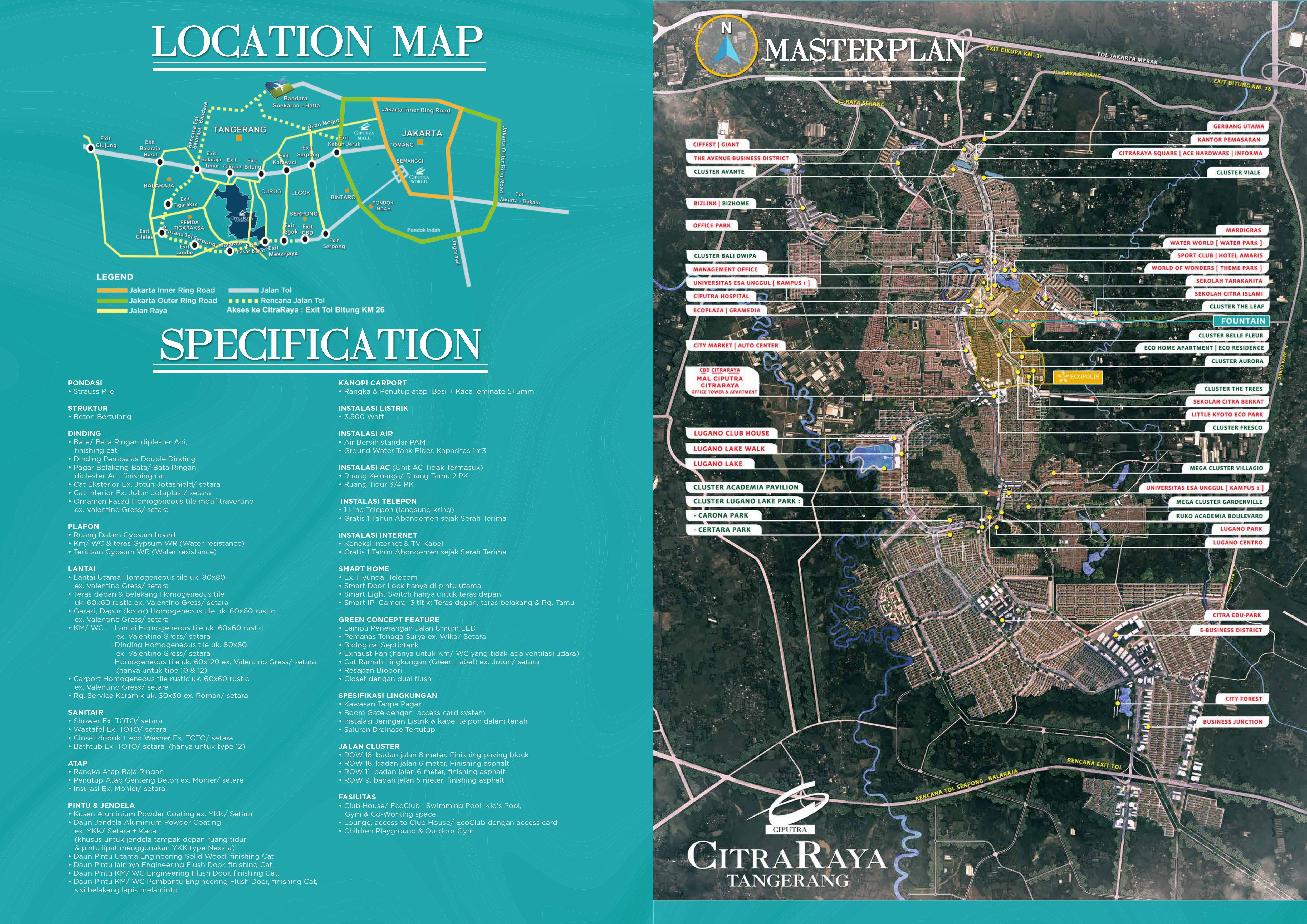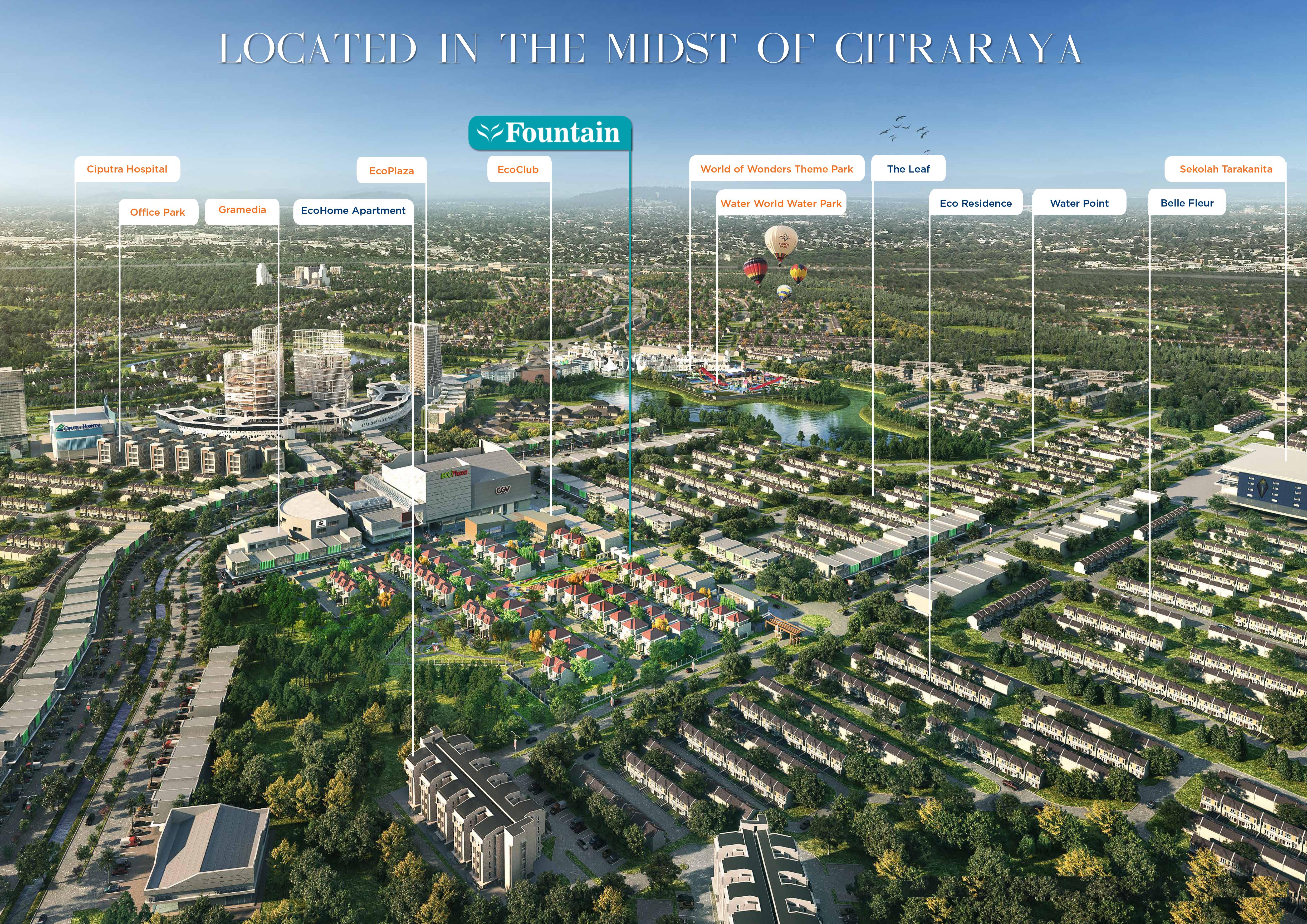 Lokasi Cluster Berada di dalam kawasan CBD Premium Ecopolis yang bergengsi dan tertata rapi. Dekat dengan World of Wonders Theme Park dan Wahana Bermain Water World. Dilengkapi pula dengan adanya Sekolah Tarakanita, Eco Plaza, Rumah Sakit Ciputra Hospital, dan commercial business district (CBD). Jantung hatinya Citra Raya Tangerang.