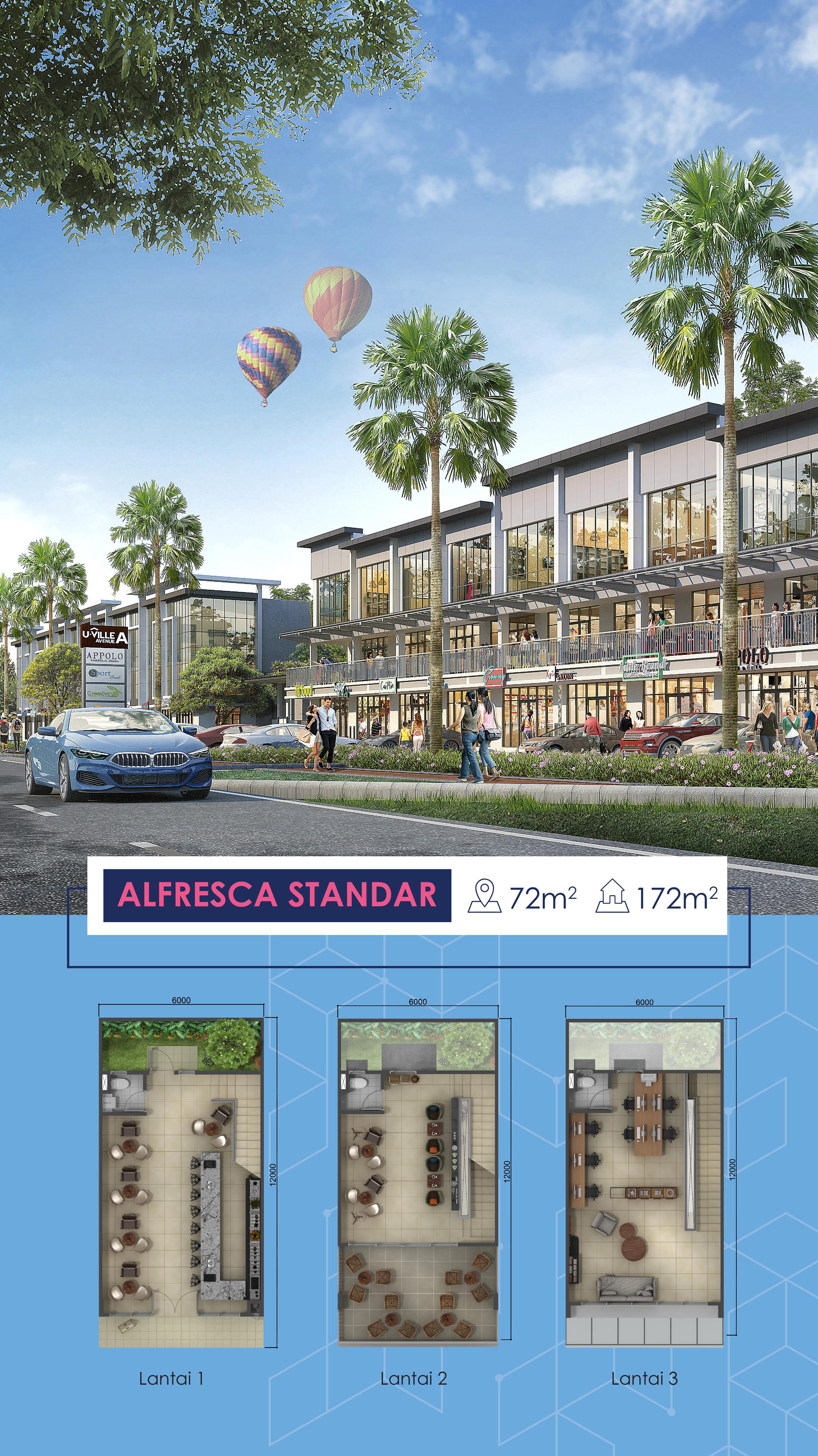 ALFRESCA STANDAR, Luas Tanah: 72m2, Luas Bangunan: 172m2.