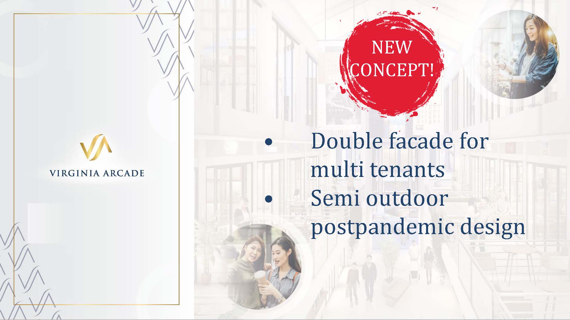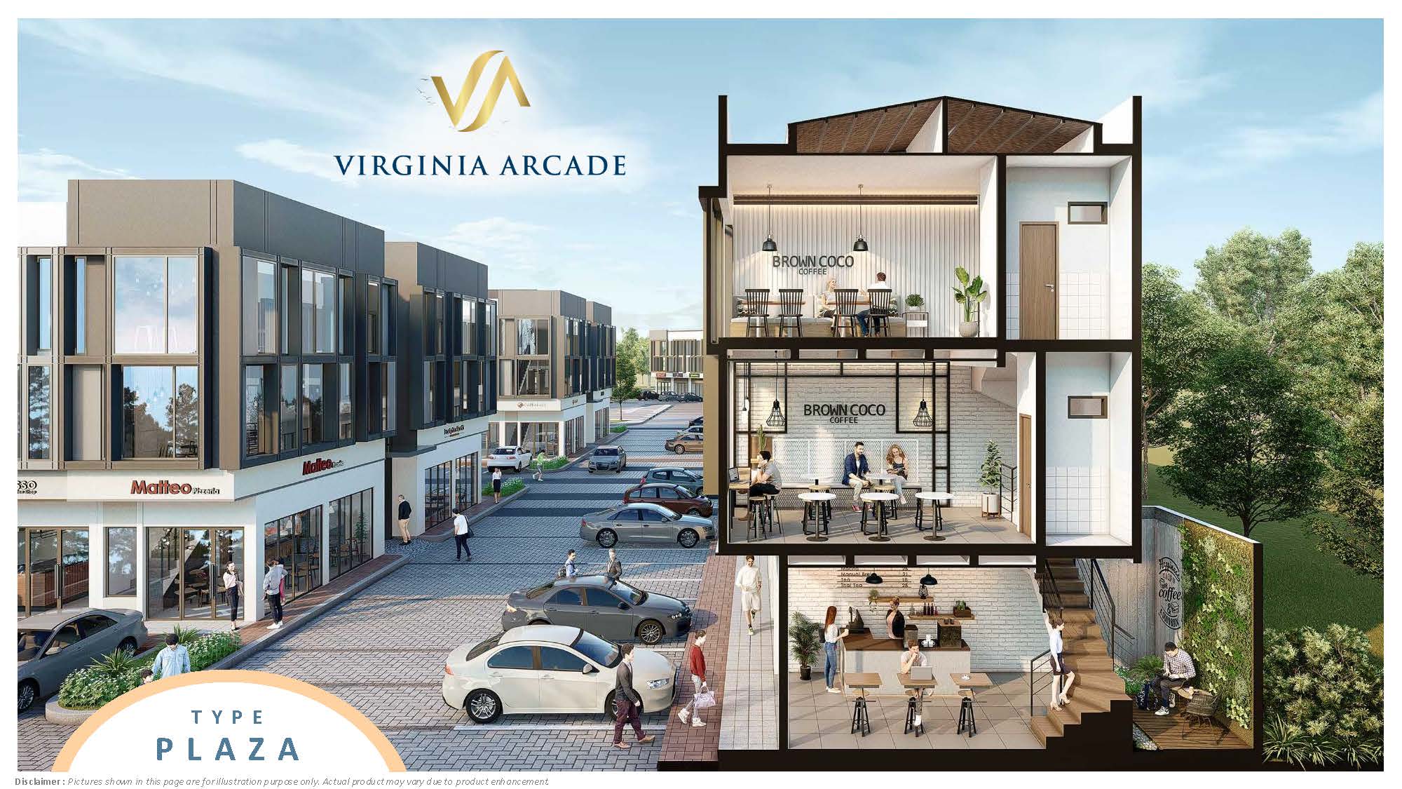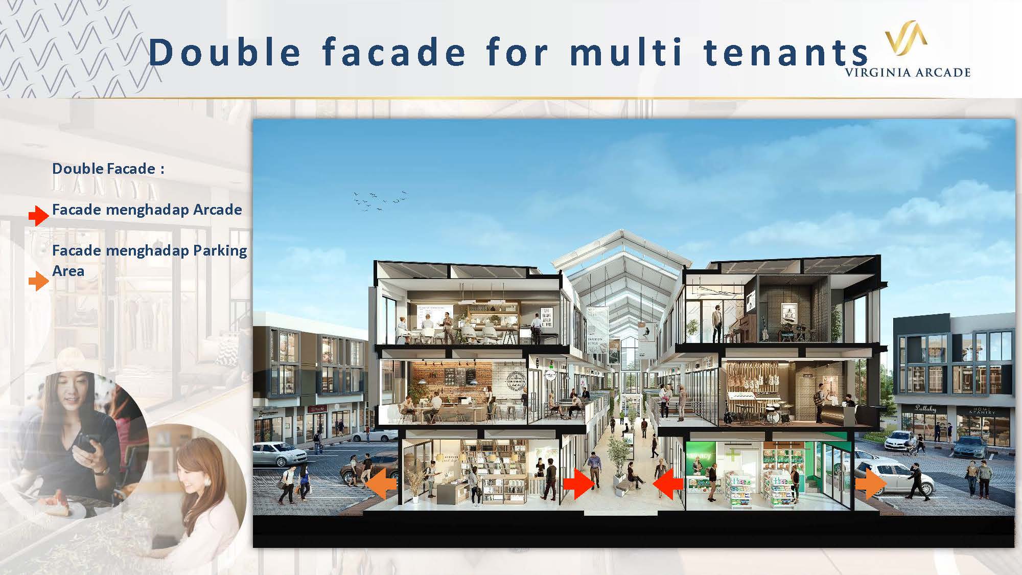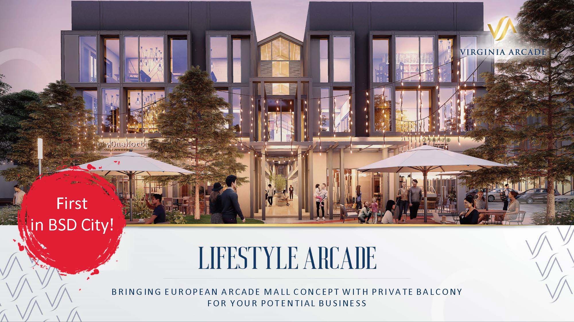 Ruko Virginia Arcade, sebuah ruko di BSD City yang mengusung konsep baru yaitu double facade for multi tenants, semi outdoor postpandemic design. Double Facade menghadap Arcade, Facade menghadap Parking Area.