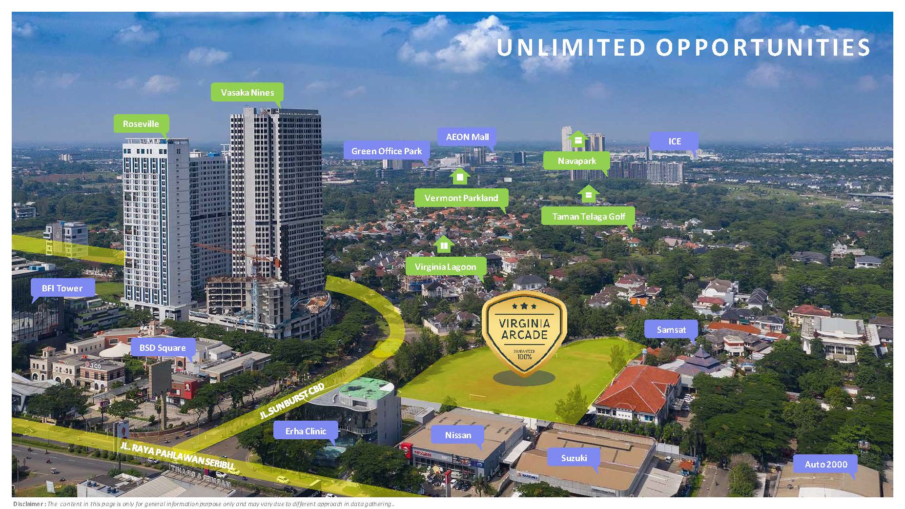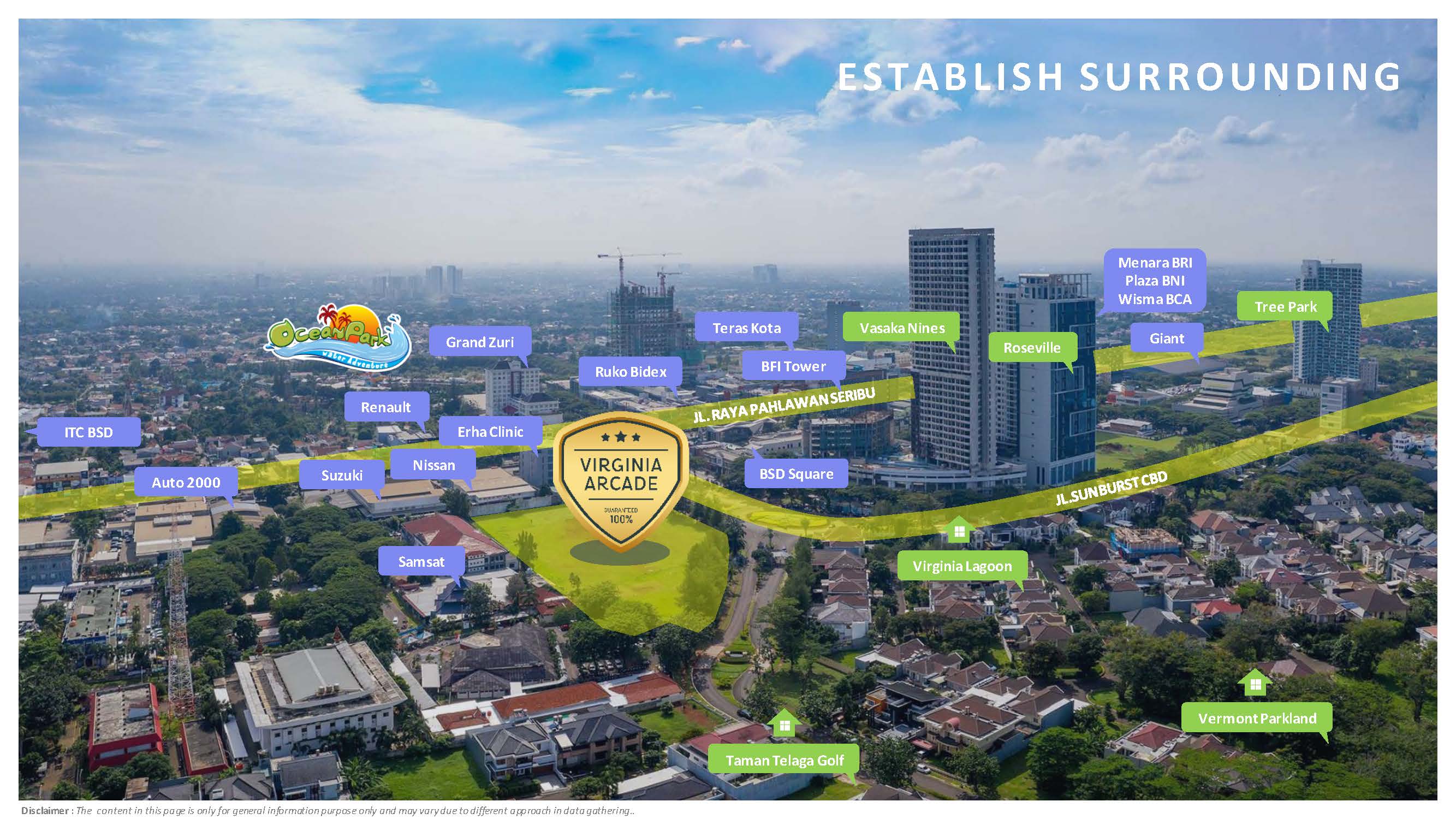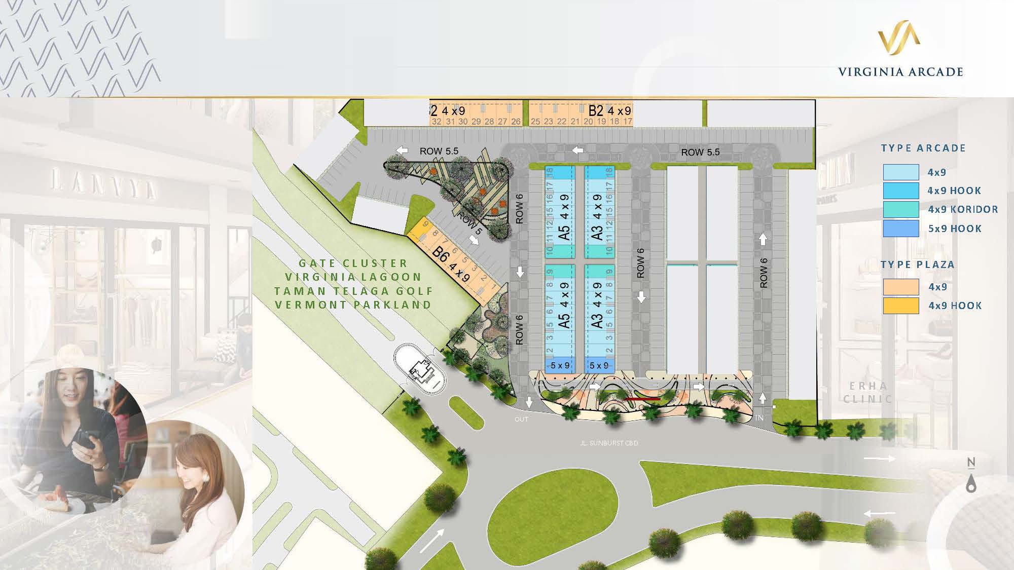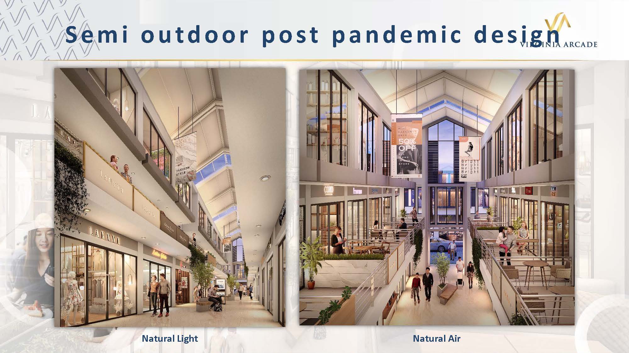 Ruko Virginia Arcade, sebuah ruko di BSD City yang mengusung konsep baru yaitu double facade for multi tenants, semi outdoor postpandemic design. Double Facade menghadap Arcade, Facade menghadap Parking Area.