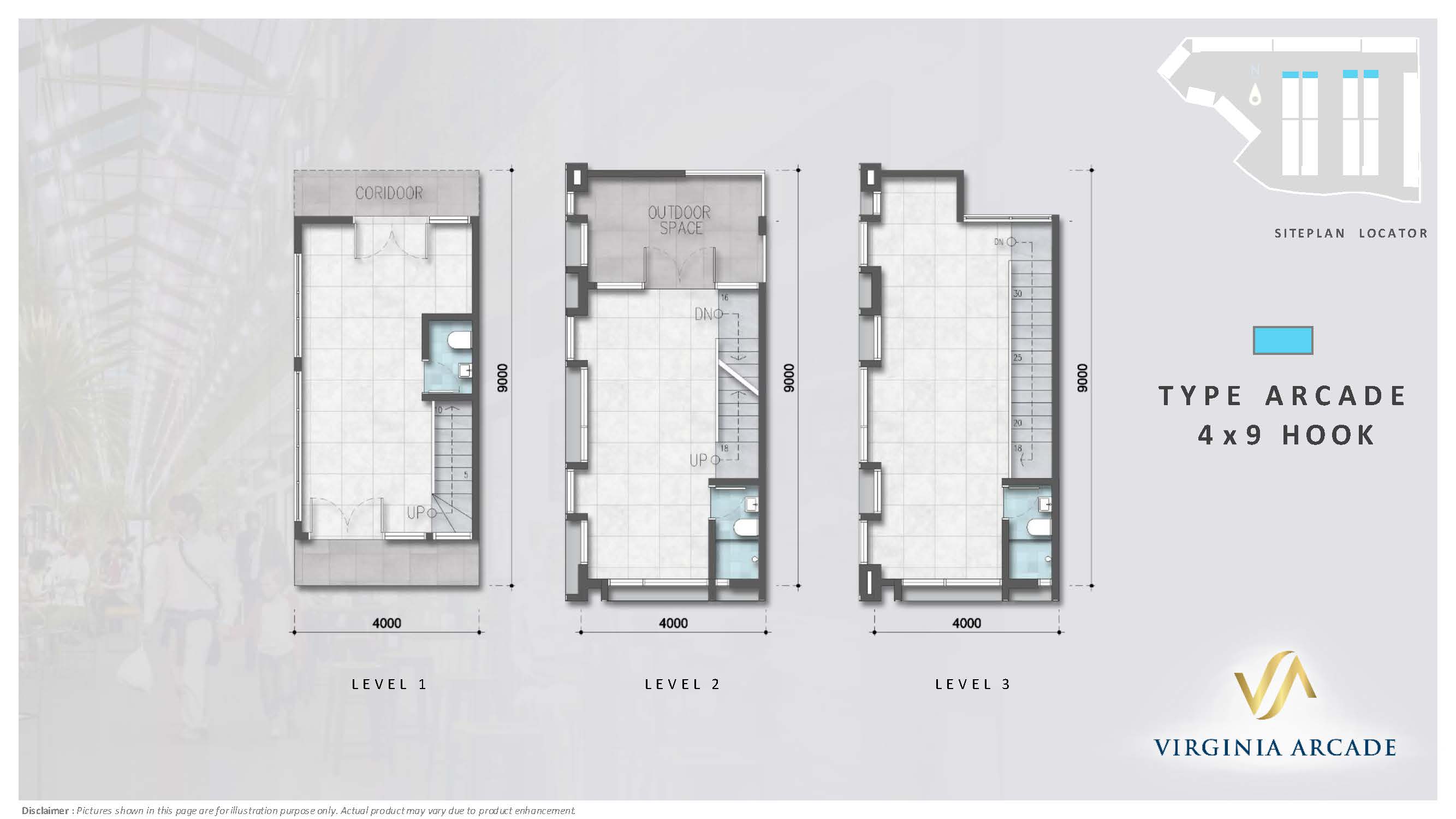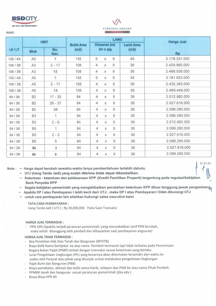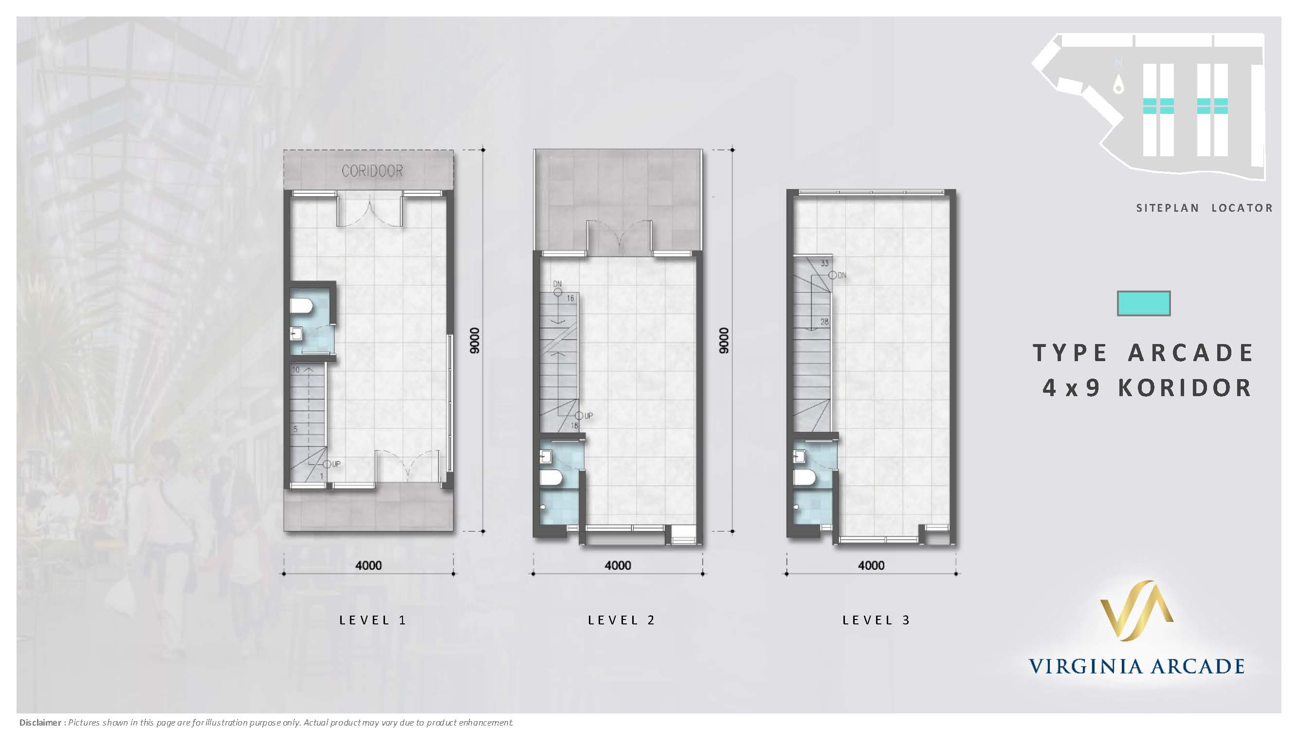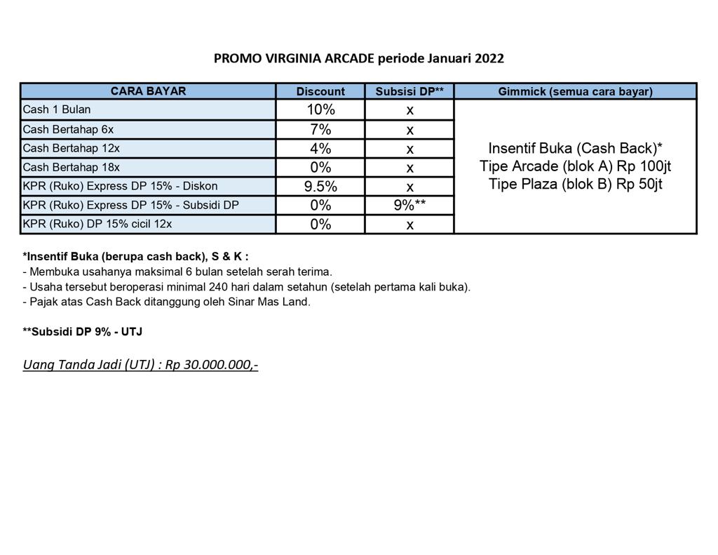 Ruko Virginia Arcade, sebuah ruko di BSD City yang mengusung konsep baru yaitu double facade for multi tenants, semi outdoor postpandemic design. Double Facade menghadap Arcade, Facade menghadap Parking Area.