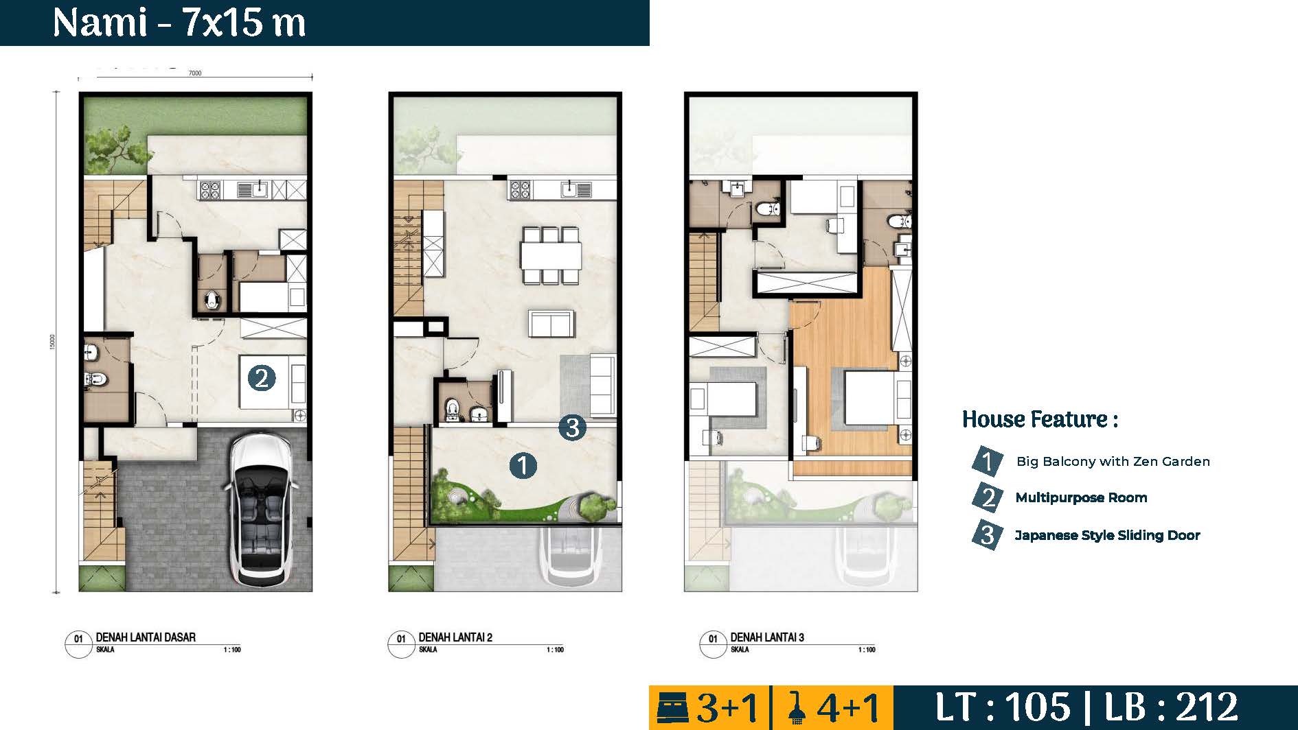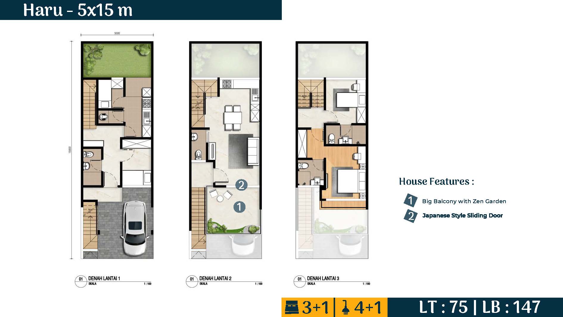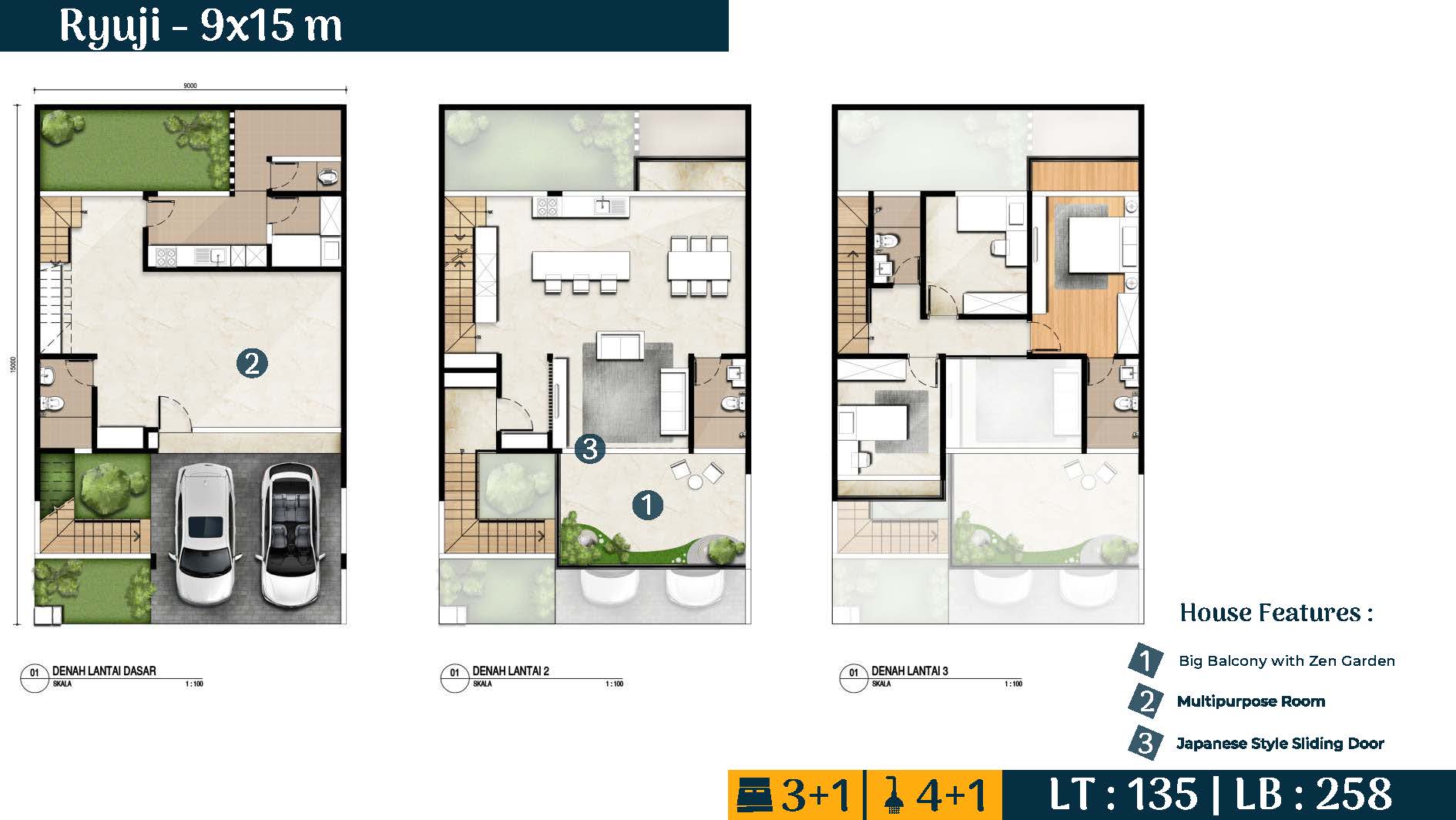 Dilengkapi dengan balkon luas dengan Zen Garden.