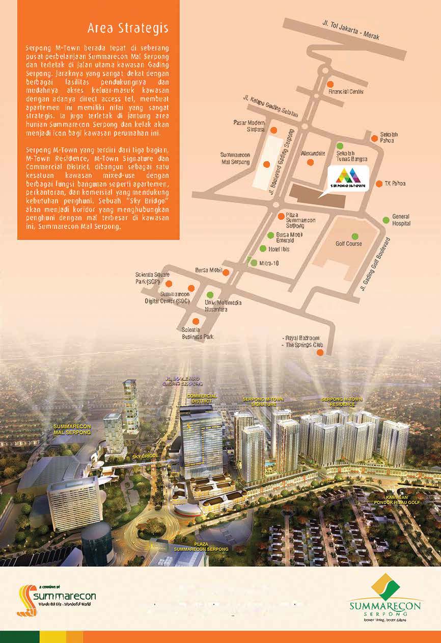 Serpong M-Town dibangun sebagai satu kesatuan mixed use yang memadukan konsep hunian, perkantoran, dan area komersial dengan kemudahan akses yang terintegrasi.