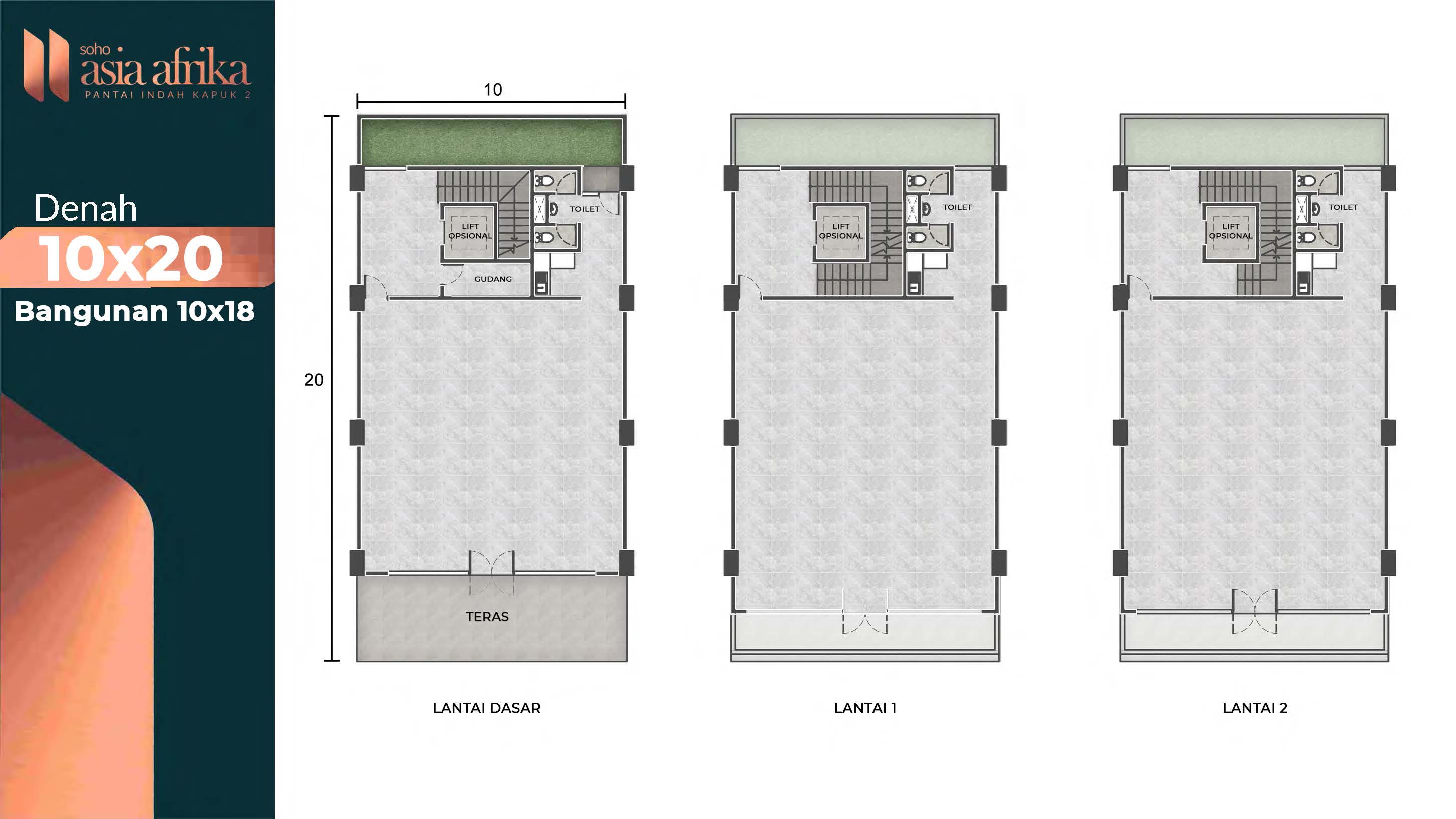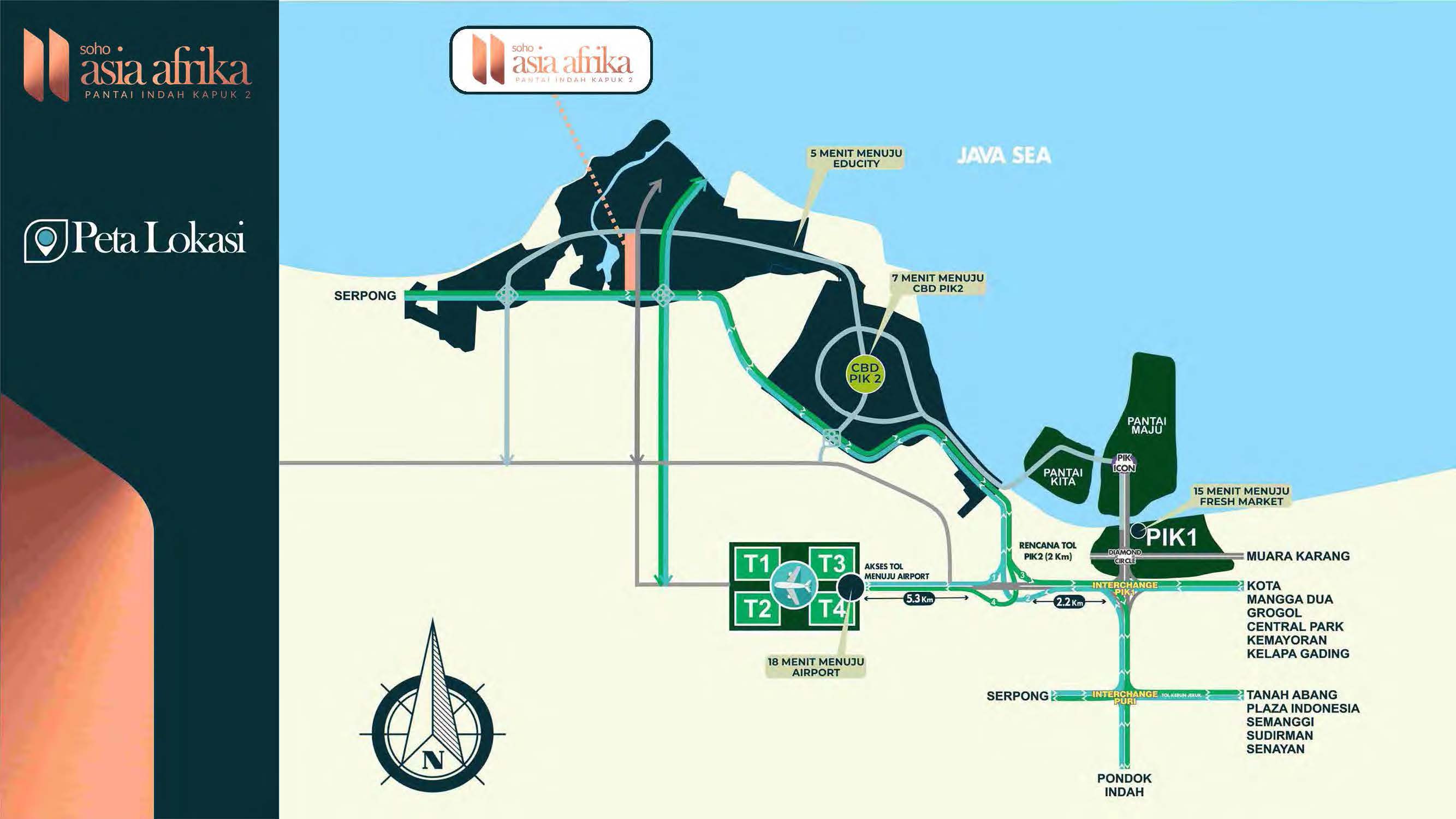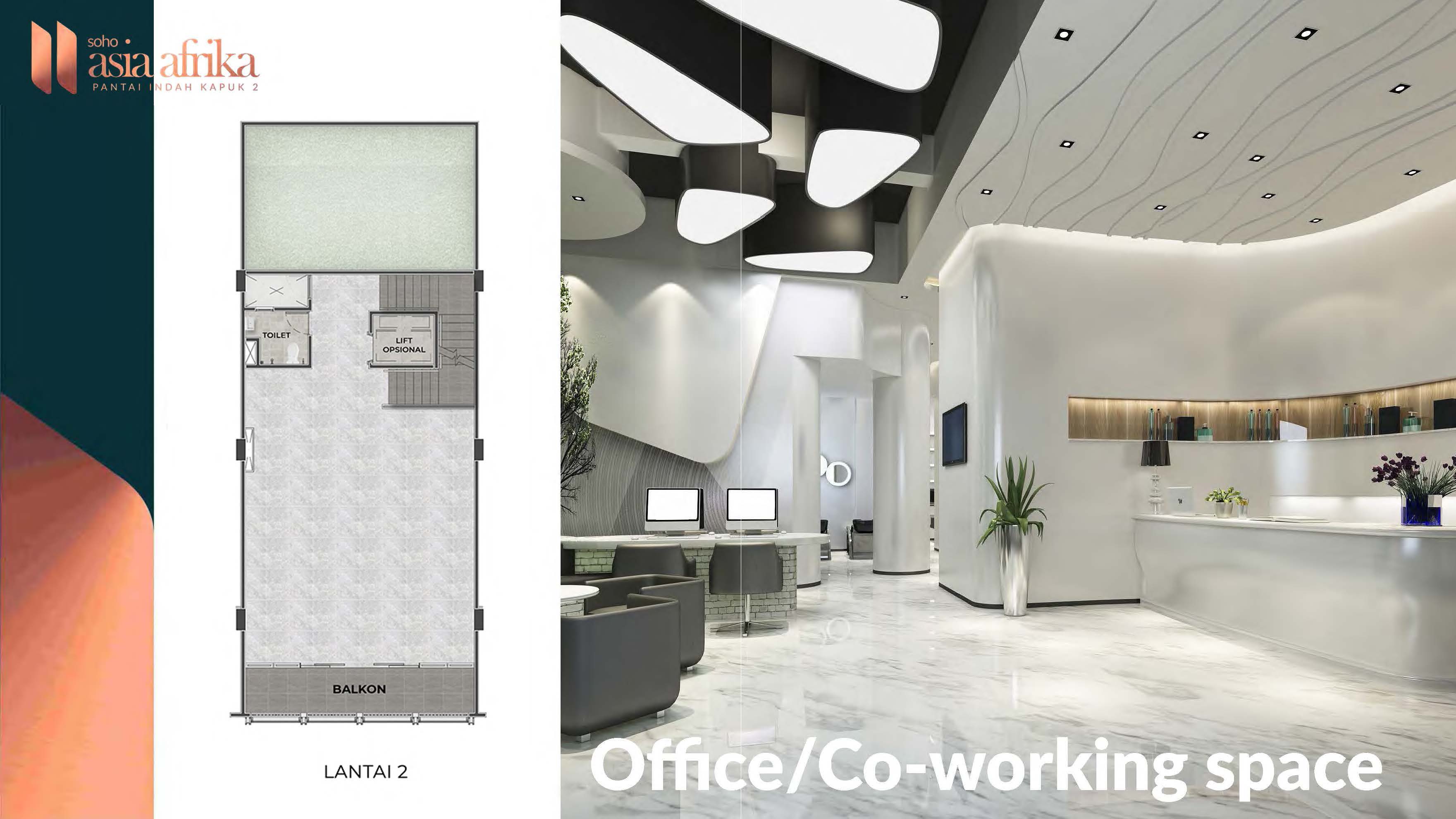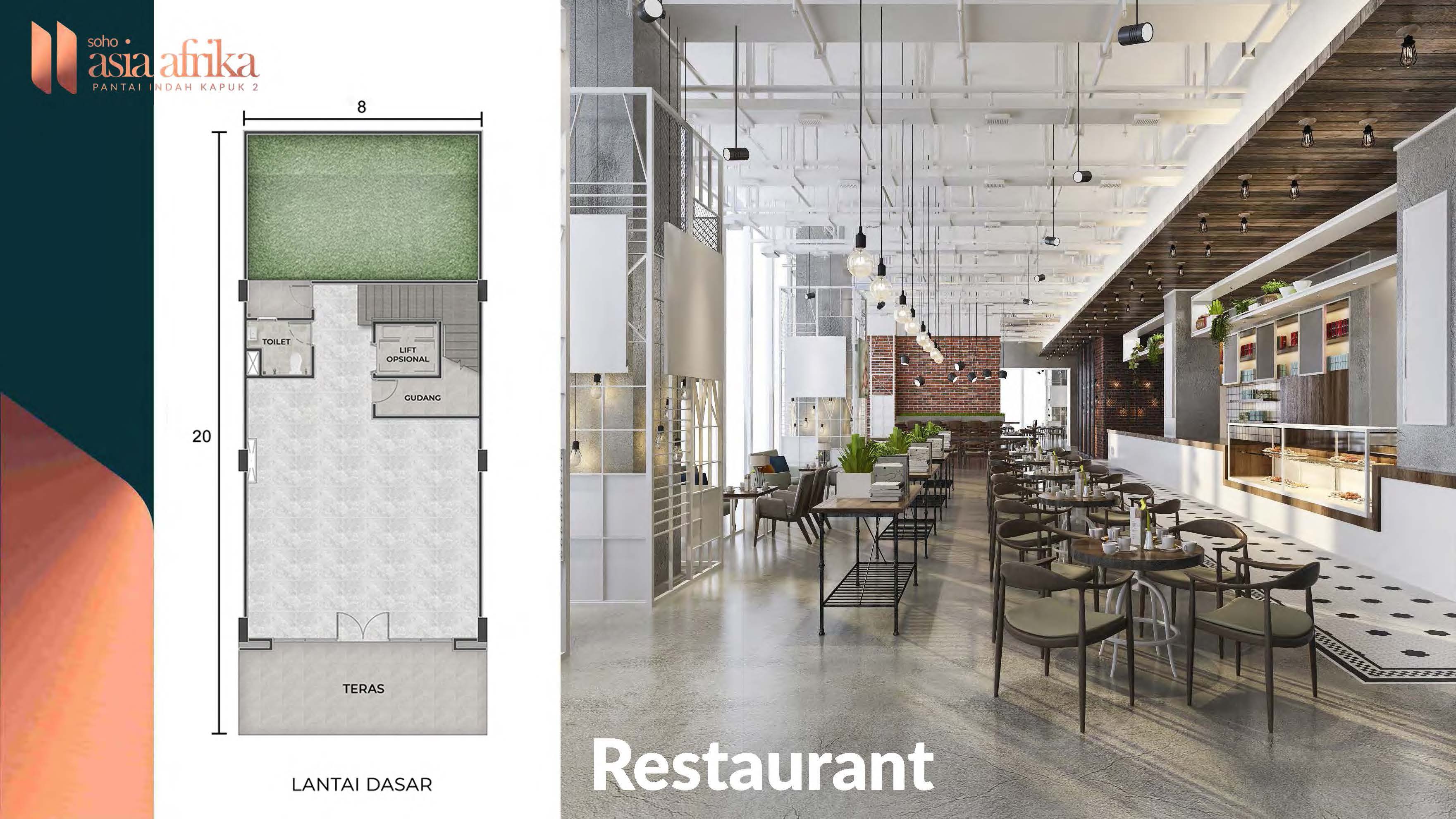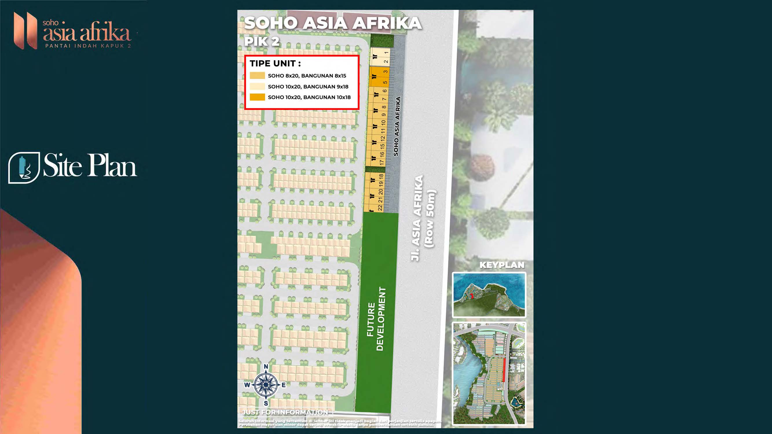 SOHO ASIA AFRIKA dikembangkan dalam megaproyek PIK 2. Terletak di Jalan Utama PIK 2, Soho Asia Afrika sangat cocok untuk anda yang ingin membuka usaha resto/cafe, bank, working space dan lain-lain.