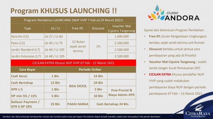Ciputra Group melalui Citra Raya menghadirkan A New Master Piece Cluster di Kawasan Kota Mandiri Citra Raya Cikupa yaitu Cluster Andora.