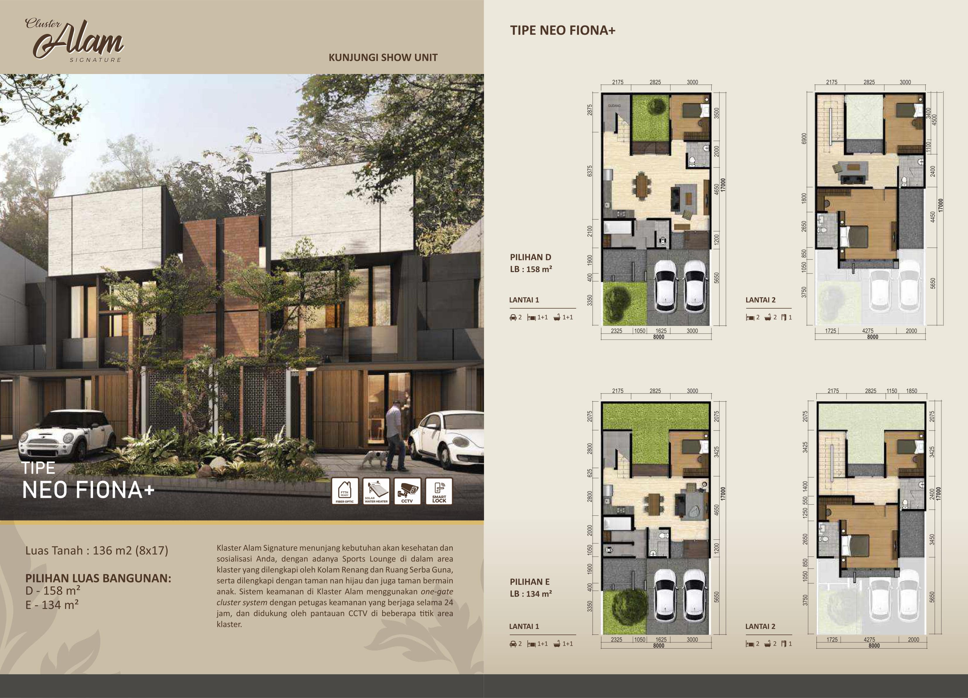 Klaster Alam Signature hadir dangan tipe rumah terbaru yaitu Neo Fairy, Neo Fiona, dan Neo Fiore yang menawarkan beragam ukuran sesuai dengan kebutuhan Anda.