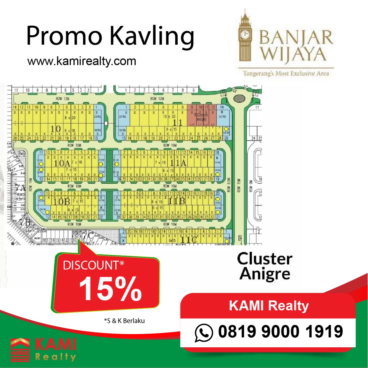 PROMO! TANAH KAVLING SIAP BANGUN DI CLUSTER ANIGRE BANJAR WIJAYA TANGERANG DISKON 15%