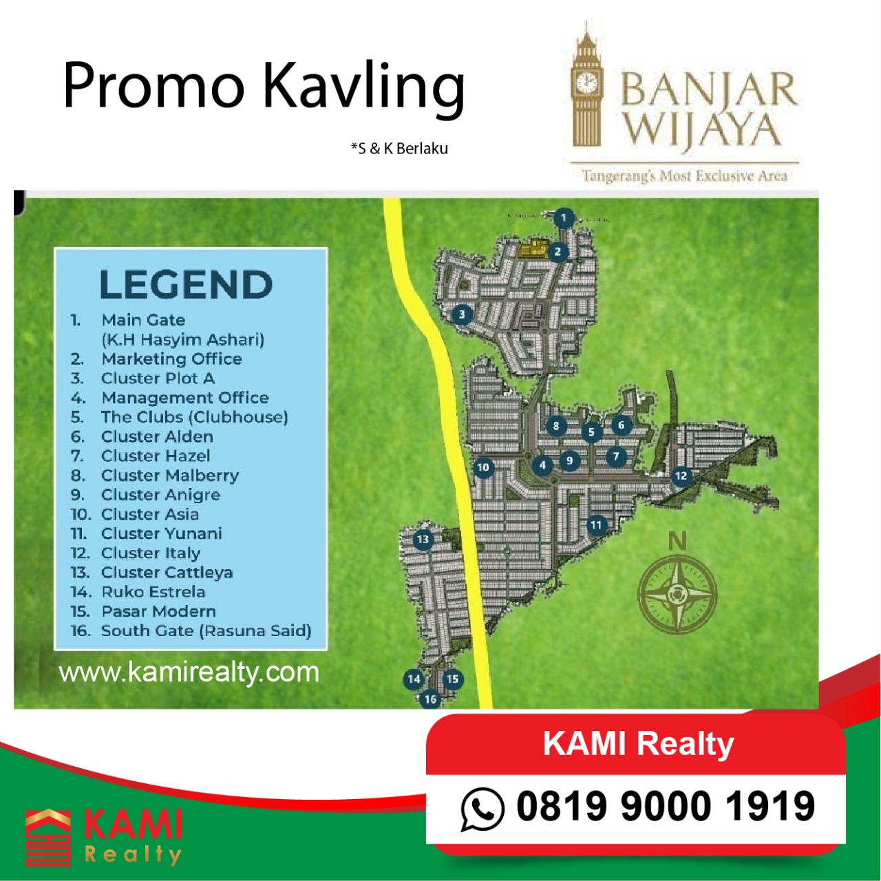 Banjar Wijaya dari Sinarmas Land sebagai pengembang selain menyediakan hunian eksklusf siap huni, juga menyediakan tanah kavling. Tersedia tanah kavling siap bangun dengan sertifikat pecah perkavling, tersedia beberapa ukuran dari kavling posisi dibadan dan hook dibeberapa lokasi Cluster Banjar Wijaya seperti Cluster Malbery, Cluster Hazel, Cluster Alden, Cluster Asia, Cluster Cattleya, Cluster Plot A, Cluster Yunani, Cluster Italy, Cluster Anigre, dll.