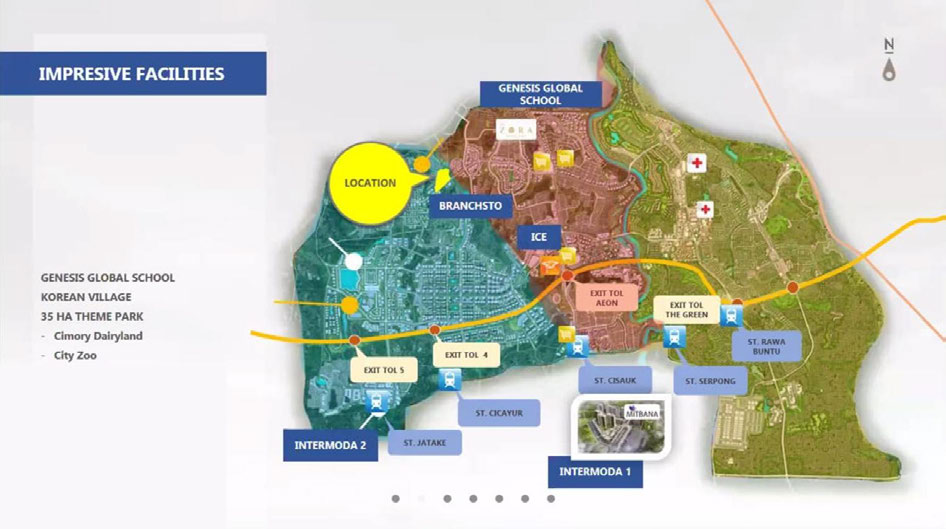 Hadir dengan lokasi terbaik yang dilengkapi dengan berbagai fasilitas seperti QBig Mall, ICE BSD, Cimory Dairy Land dan City Zoo. Hadir juga beberapa sekolah ternama seperti BPK Penabur, Global School, dan lain-lain.