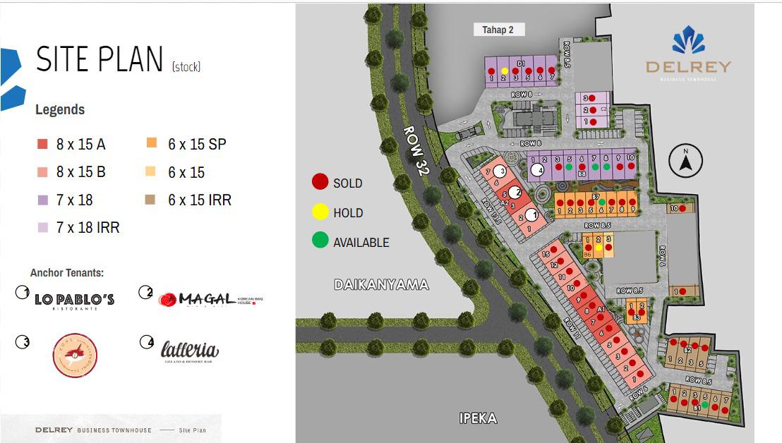 Pada tahap pertama, ruko Delrey BSD dijual dengan 3 pilihan tipe yaitu:
