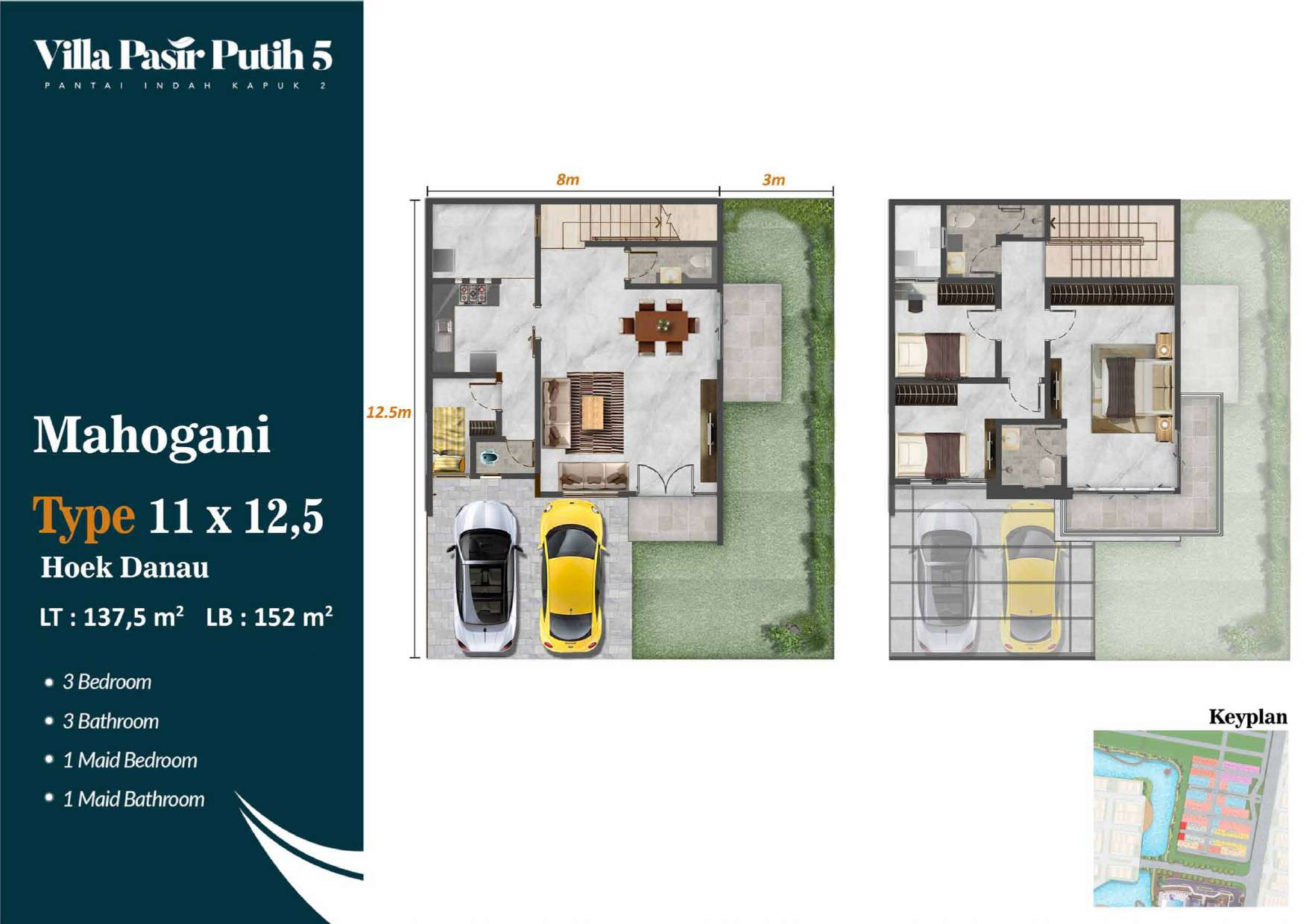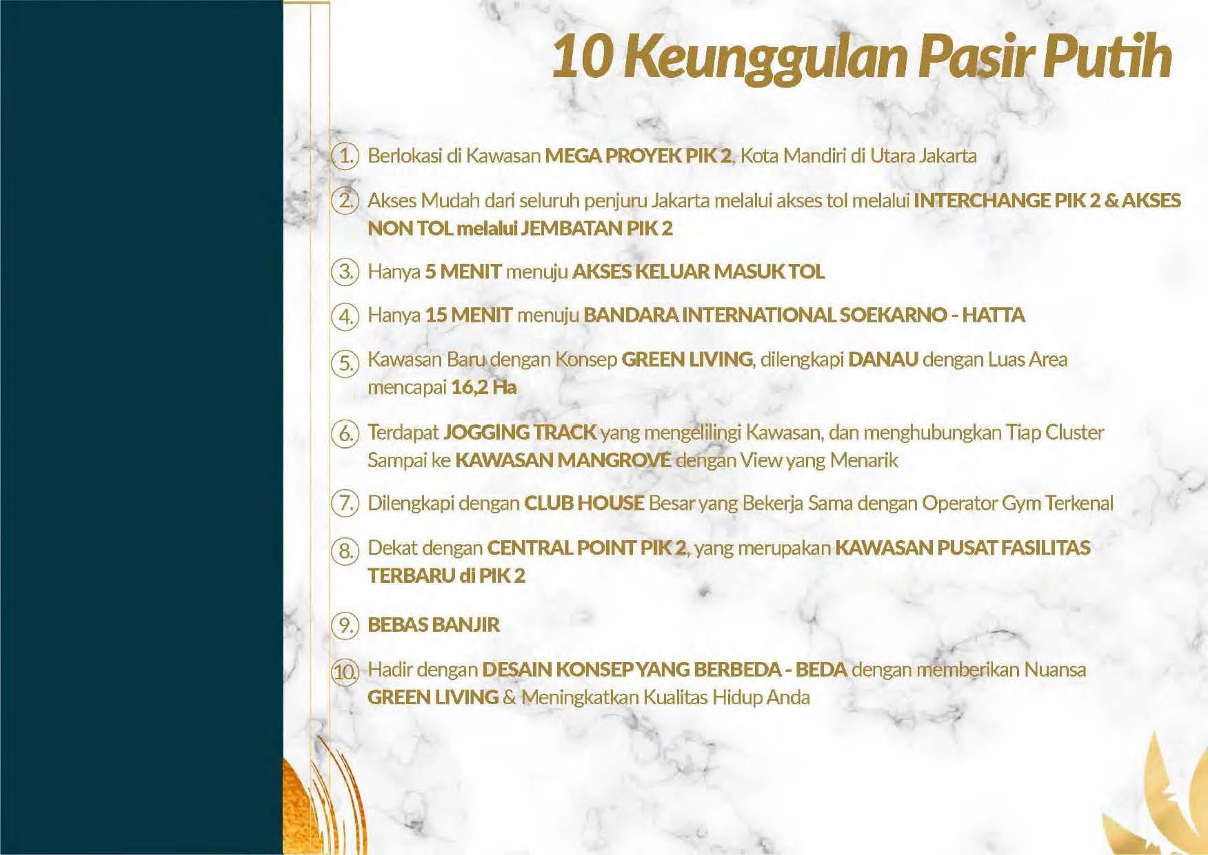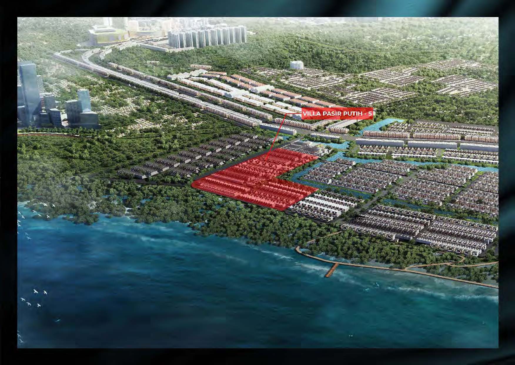 Villa Pasir Putih 5 terletak di Mega Proyek PIK 2. Hasil dari kolaborasi Agung Sedayu Group dan Salim Group ini, menghadirkan konsep Green Living yang juga dilengkapi dengan danau.