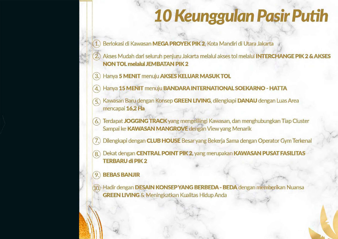 Villa Pasir Putih 6 terletak di Mega Proyek PIK 2, hasil kolaborasi Agung Sedayu Group dan Salim Group. Menghadirkan konsep Green Living yang akan meningkatkan kualitas hidup anda.